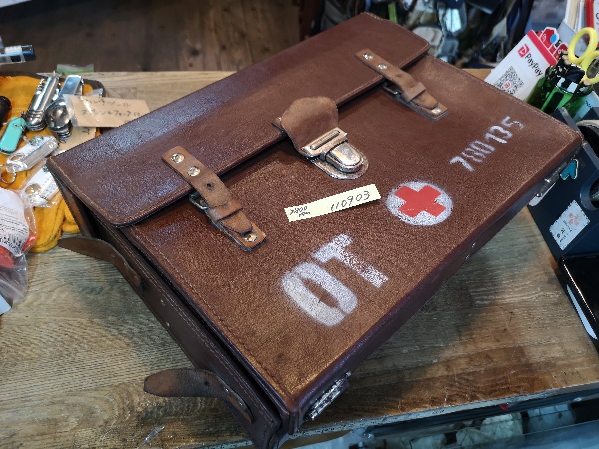 ハンガリー軍の放出品です。落ち着いたブラウンのレザーに、赤十字マークとステンシル風のナンバーがデザインされており、ミリタリーテイストを感じさせます。