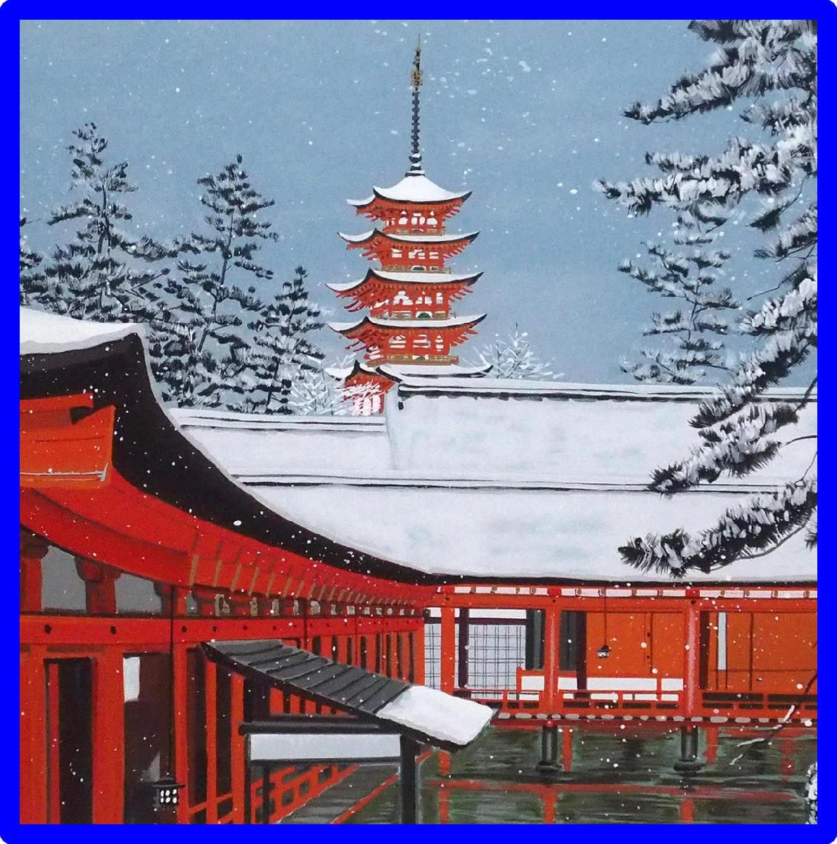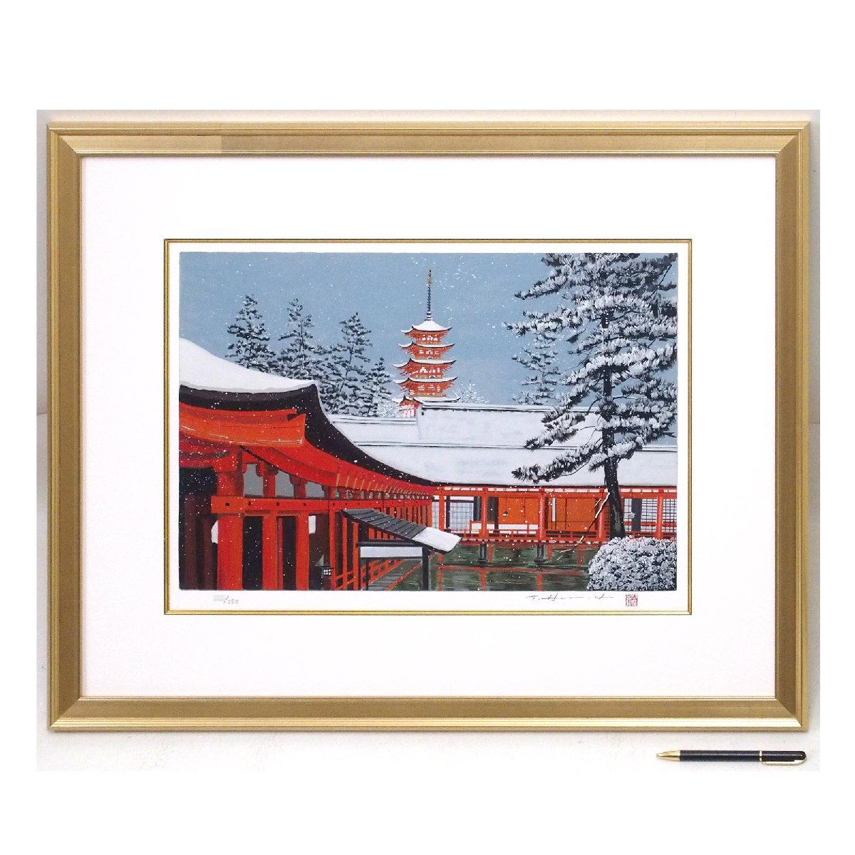 浜田泰介 「雪の厳島神社」 リトグラフ