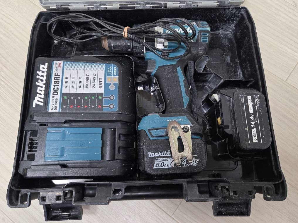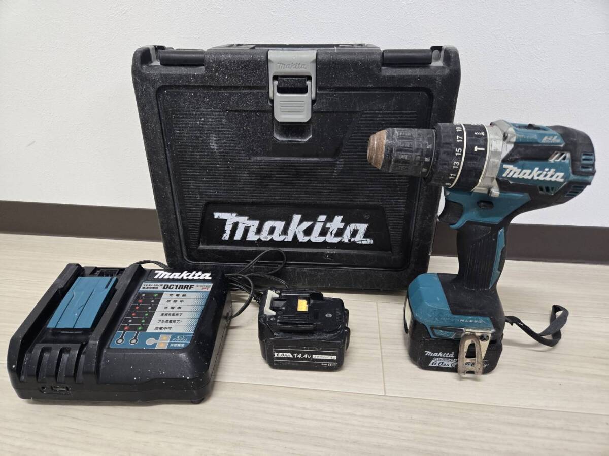 | 683 makita マキタ 充電式振動ドライバドリル HP474D バッテリー BL1460B 2個 充電器 DC18RF ケース付き 通電・簡易動作確認済み 現状品 |