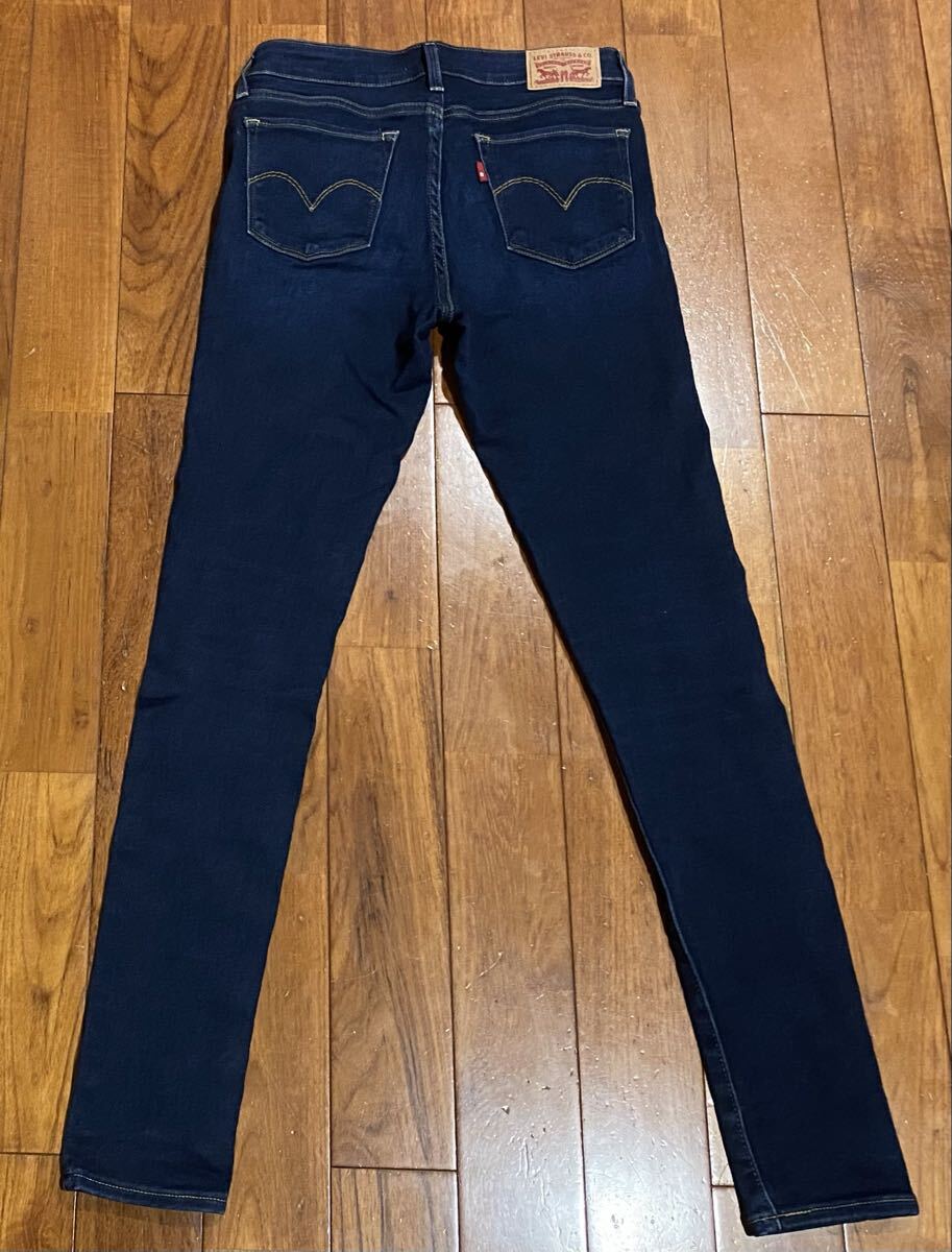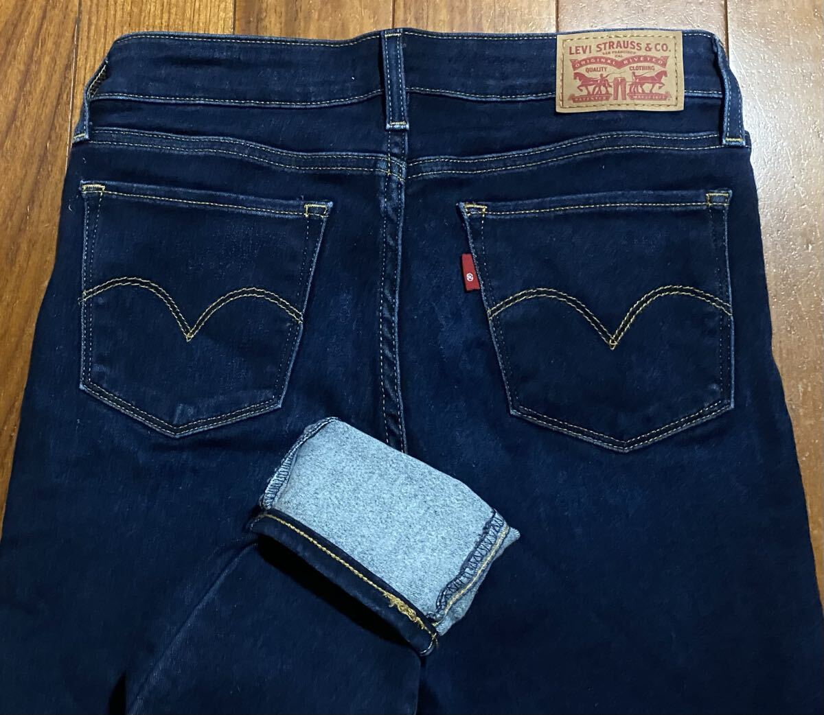 リーバイスのストレッチ暖スキニーデニム(ジーンズ)、711 SKINNY 18881-0447です。色はインディゴブルーです。USEDですが状態は良いです(10段階中8程度)。生地はストレッチ入りで綿68%、ポリエステル31%、ポリウレタン1%です。紙パッチ、ジッパーフライ、裾はチェーンステッチです。正規品です(スリランカ製)。サイズはW26×L30でウエストは重ねずに平置きで約71cm、ヒップ約80cm、股上約22cm、股下約76cm、股下15cmのふともも部分約39cm、裾まわり約25cm、重量約400gです。発送はゆうパケットポストになります。