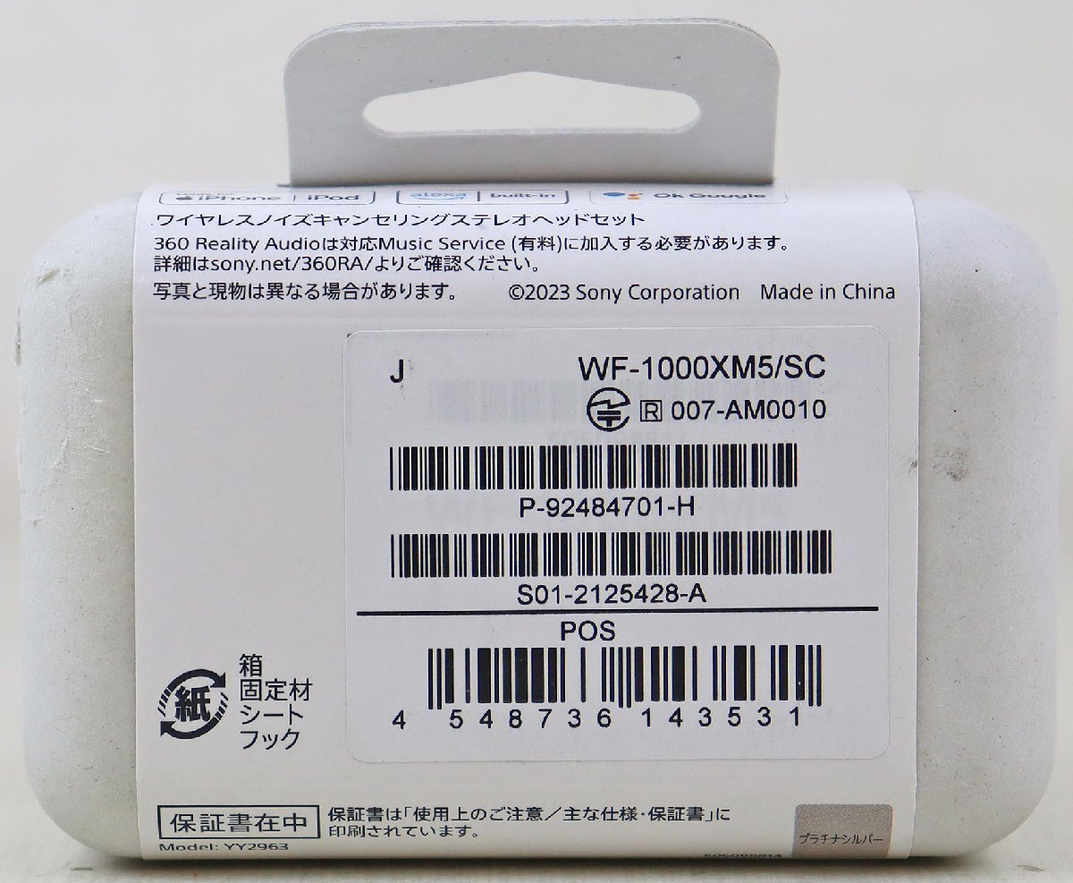 | S◎未使用品◎ワイヤレスノイズキャンセリングステレオヘッドセット『イヤホン WF-1000XM5/SC』 SONY/ソニー プラチナシルバー 未開封 | |