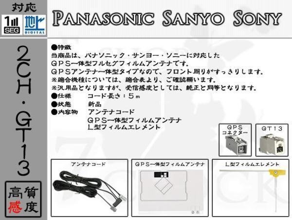 | 受信チャンネル:地上波デジタル UHF(13~62ch) フィルムサイズ:約縦75mm×約横115mm コード長さ:約5.0m コネクタ:GT13 GPSアンテナ用コネクター:汎用タイプ(角型・灰色コネクター) |