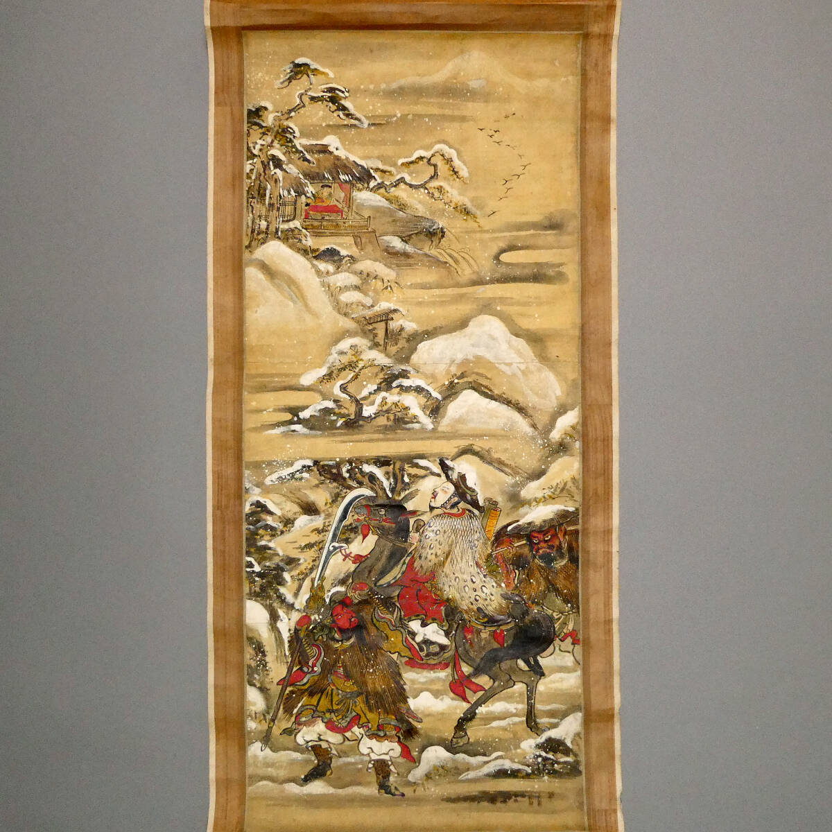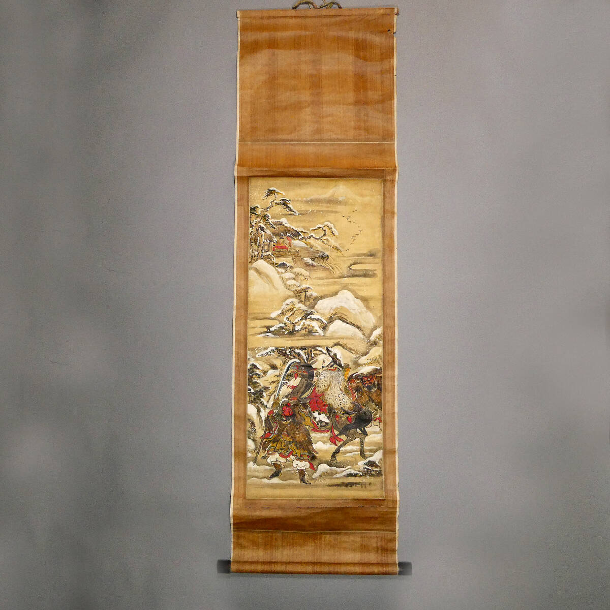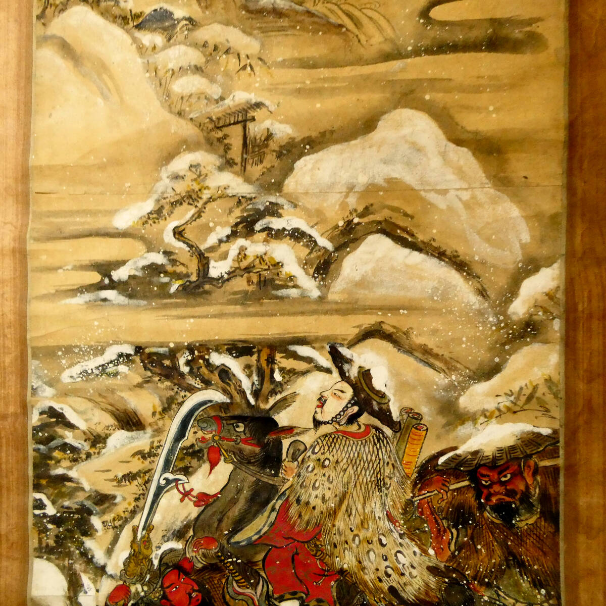 ■ 中国古画 『三国志 武将雪中行軍図』 紙本肉筆 日本画 掛軸 玄徳 張飛 関羽 ■