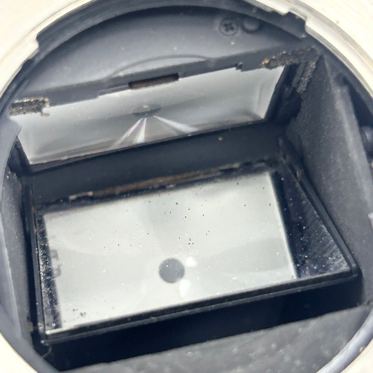 ・全体的に目立つ汚れやカビ汚れ、サビ、埃汚れ、スレあり。 【マウント】 ・素材劣化による剥がれ、汚れ付着、カビ汚れ、縁に汚れや変色、スレ 【ファインダー】 ・目立つ汚れ、縁に打痕やキズ、スレ、汚れ 【フィルム室】 ・カビ汚れ、素材の劣化による剥がれ、剥がれた素材の付着、スレ、金具にサビ |