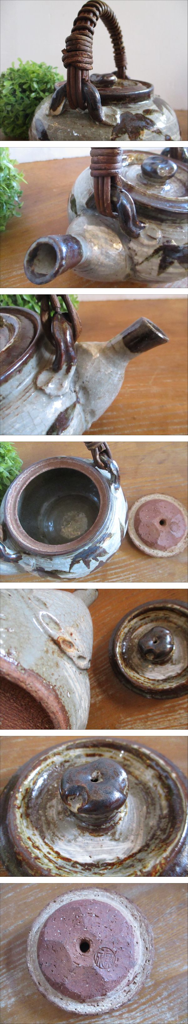 | ご覧いただき、ありがとうございます。 【レア・希少】 京泉? 土瓶 銘入り ふた裏に、「京泉」のような銘がございますが、詳細は不明です。 あまり見かけないお品だと思います。 お好きな方、この機会にぜひいかがでしょうか☆ 【サイズ】 注ぎ口を含む幅最大 20.5cm 高さ 約11cm 重量 約700g (おおよそのサイズです。素人の採寸ですので若干の誤差はお許しください。) 【状態】 使用品です。 自宅での長期保管品になります。 陶器製品特有の、製造時からの黒点、えくぼ、突起、ざらつき等がございます。 その他、特に大きく目立つようなダメージはないように思いますが、古いものになりますので、大きく目立たない程度の小傷や汚れがある場合がございます。 割れや欠けはございません。 USED品としては良い状態だと思いますが、状態の捉え方には個人差がございます。細かな点が気になる方はご入札をお控えくださいませ。 USED品にご理解ある方のご入札をお待ちしております。 専用の箱はございませんが、丁寧に梱包して発送いたします。 詳細は写真をご覧の上ご判断くださいませ。 画像に写るグリーンの球体(直径約11cm)は商品には含まれません。 最終日のご質問には回答が間に合わない場合がございます。ご了承くださいませ。 同時期に様々な食器を出品しております。ぜひそちらもご覧くださいませ。同梱発送も可能です。(送料は変更となる場合がございます。ご了承くださいませ。) | |||