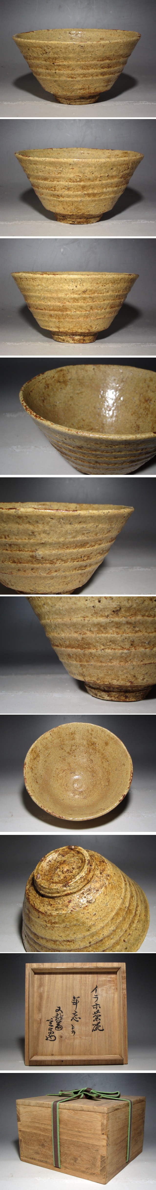 古伊羅保茶碗「年忘」です。 時代を感じる素晴らしい逸品です。 箱蓋裏に裏千家十二代又妙斎の花押があります。 サイズ 直径14.5cm/高さ8cm(多少の誤差はお許しください) 状態 一見して疵やヒビ・直しは見られません。 骨董品という事をご勘案頂き、時代経過のスレや、小さな傷がある場合があるかもしれませんのでご承知置きください。 | |||