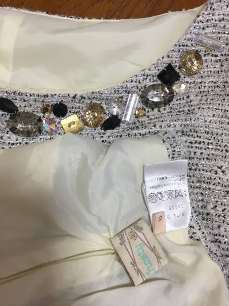 | シルバーラメがキラキラ光るツイード地に胸元の豪華ビジューがとても素敵で、 | ||