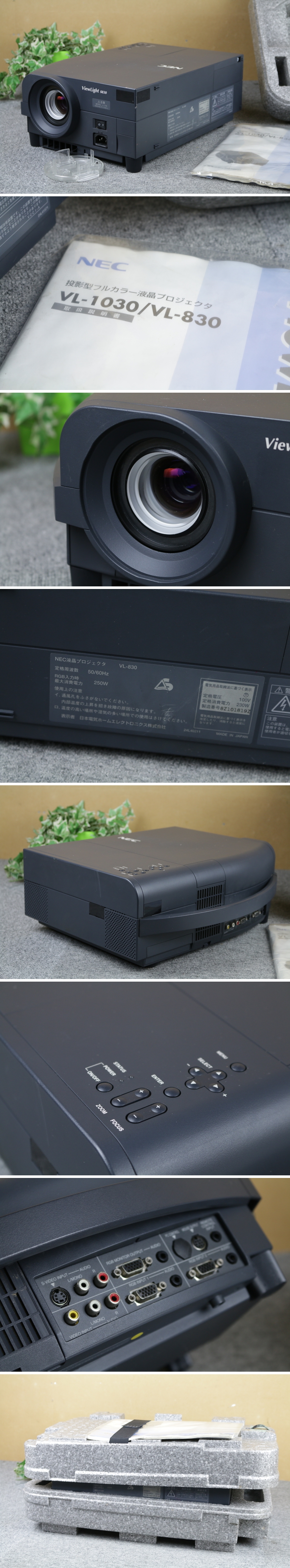 | NEC 液晶プロジェクター VL-830 ViewLight S830 [一部難有] 外寸:高160×横340×奥400mm 動作品 ランプ使用時間:1044時間(取説上、寿命は2000時間まで リモコンは欠品、電源コードは付属しません。 傷汚れがあります。内部でカラカラ音あり。 電源が入り投影動作しましたが、スクリーンに縦線が何本か入りような状態です。 使用は出来ますが一部難有としてご理解ください。 出品の商品は背景のものを除く画像のもので全てです。 サイズは約です、多少の誤差はご容赦下さい。説明内容の相違や動作不良があった場合は返金対応いたします。 保証期間は商品到着から10日間。保証内容は商品代金と送料です。 | ||