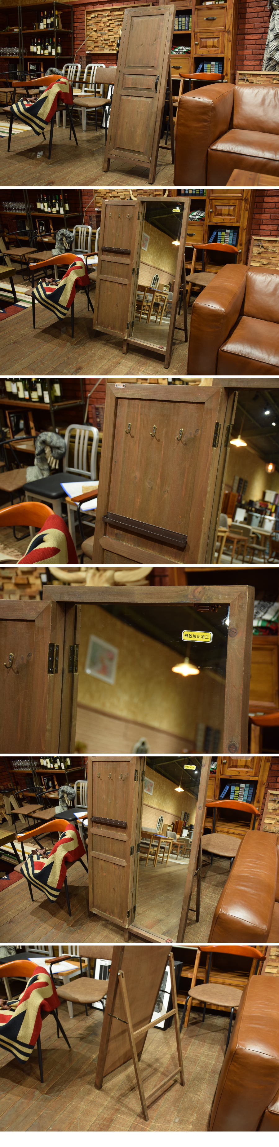 | ◆ 商品説明 | ■ 新品商品 ■ 天然木杉材を使用し、素朴で落ち着いた雰囲気を演出する北欧スタイルミラーです。 扉が付いており、ミラー部分は隠すことが出来ます。 また扉の内側はフックとトレーが付いており、アクセサリーや小物の収納が可能。 ミラーは3mm飛散防止ミラーなので万が一の時も安心です。 オシャレなミラーで身だしなみチェックも楽しくなりそうです。 ■ 鏡サイズ 縦118cm×横38cm ■ 折りたたみ時奥行き6.5cm |