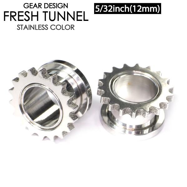 フレッシュトンネル ギア 5/32インチ (12mm) サージカルステンレス ボディピアス インパクト ハード デザイン ボディーピアス 5/32inch