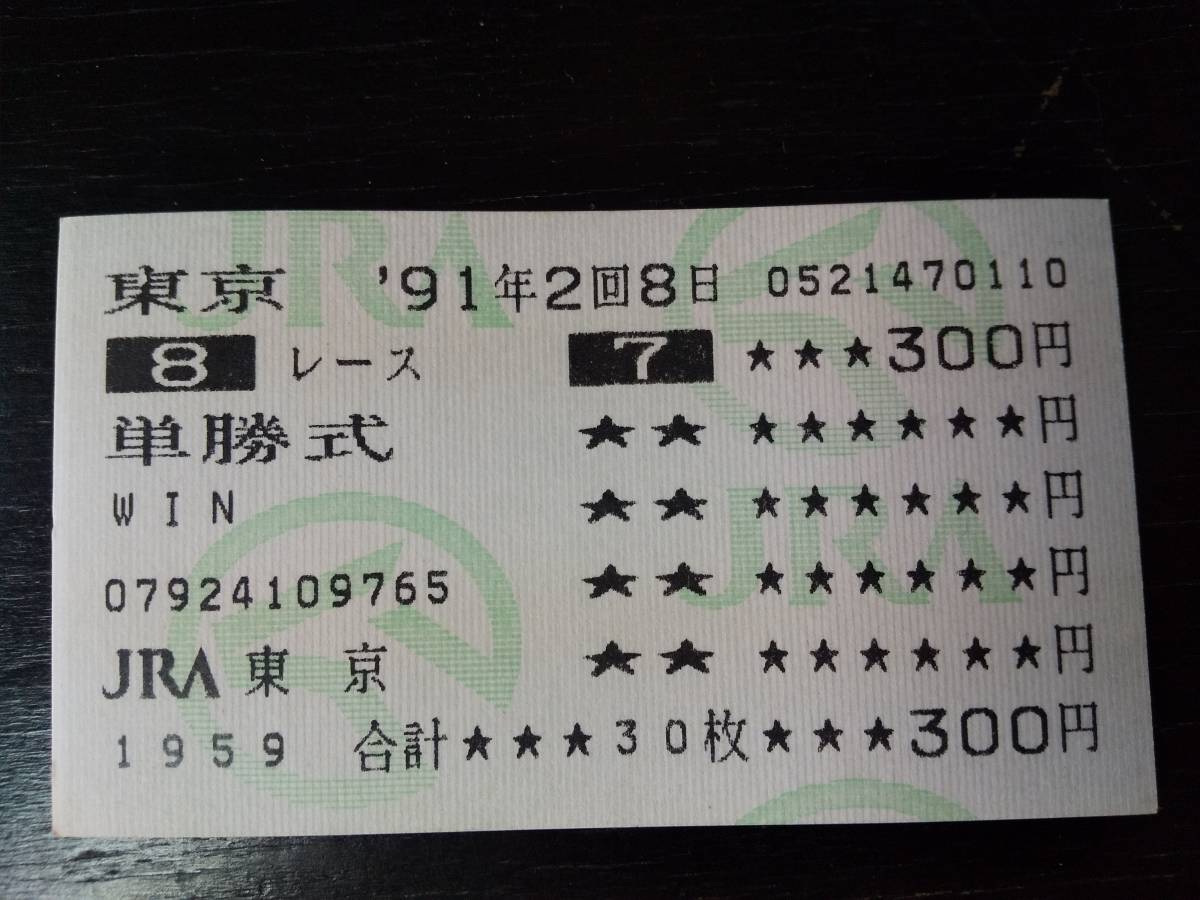| 1991年 高尾特別『 スズドレッサー 』のはずれ単勝馬券 現地 です。 |