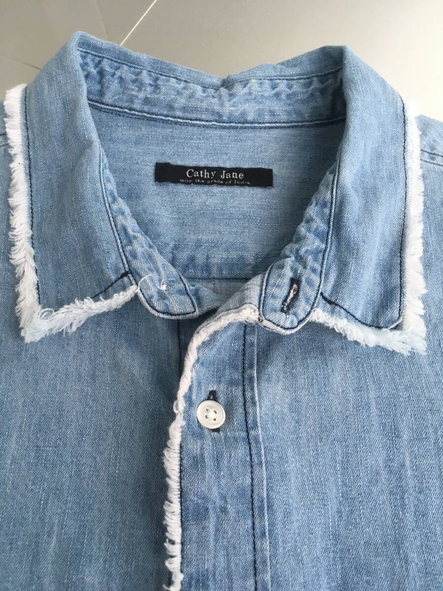 新品 Cathy Jane 襟フリンジ デニムシャツ