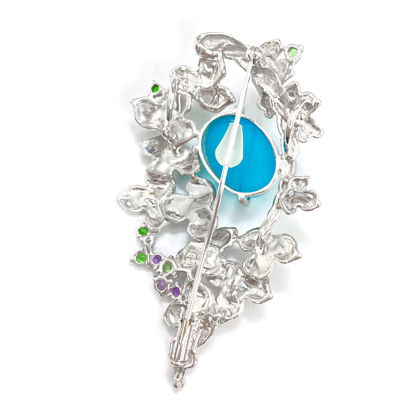 | 素材 | K18ホワイトゴールド ブルーカルセドニー(11.08ct) ダイヤモンド(0.03ct) アメシスト グリーングロッシュラーガーネット |