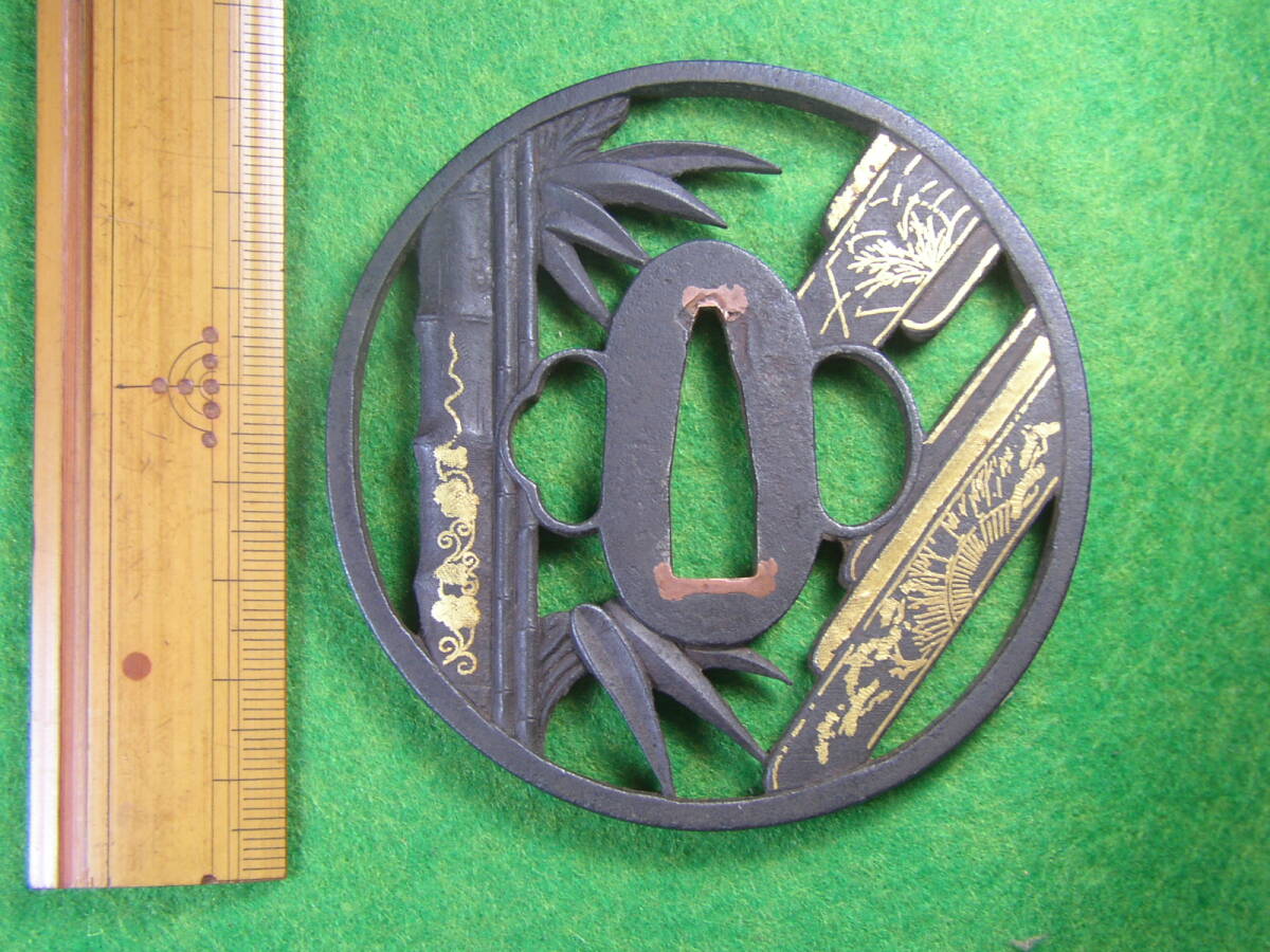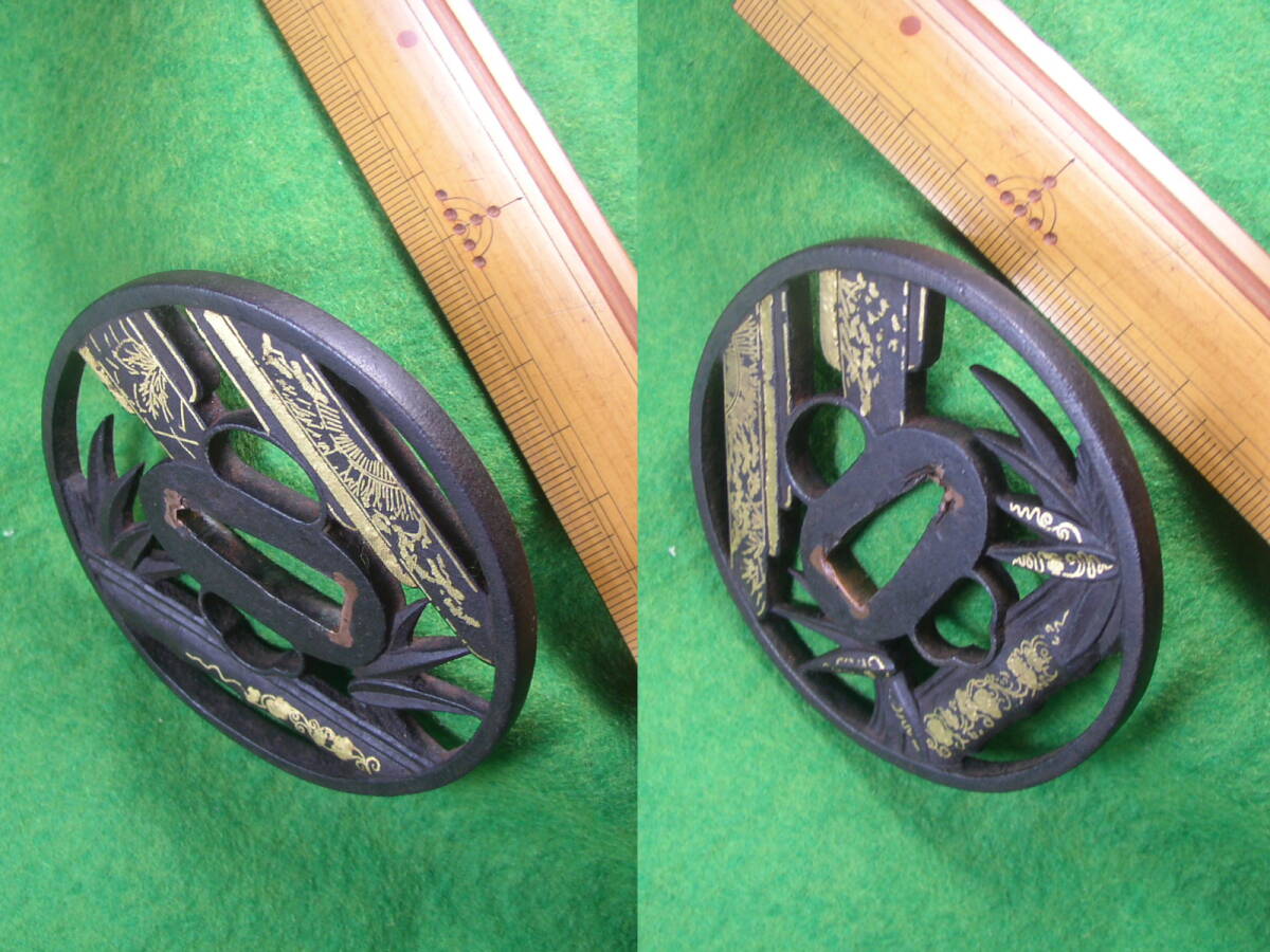 江戸中期頃の大鍔ですから当然の事として「使用感・経念感」はありますが当方見る限り 問題になる傷みは無く「時代物」としては「最上々」の状態ですが 時代を経た物である事をご理解のうえ応札願います。