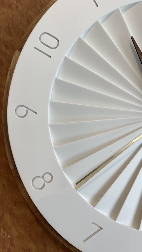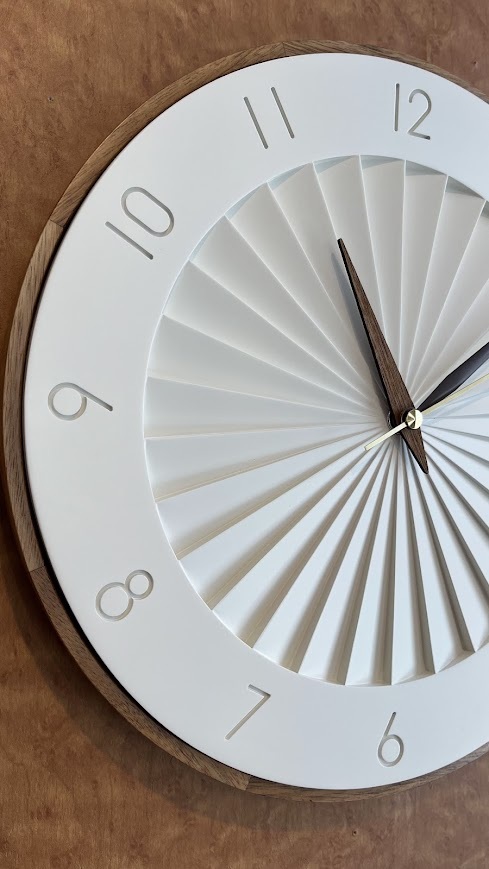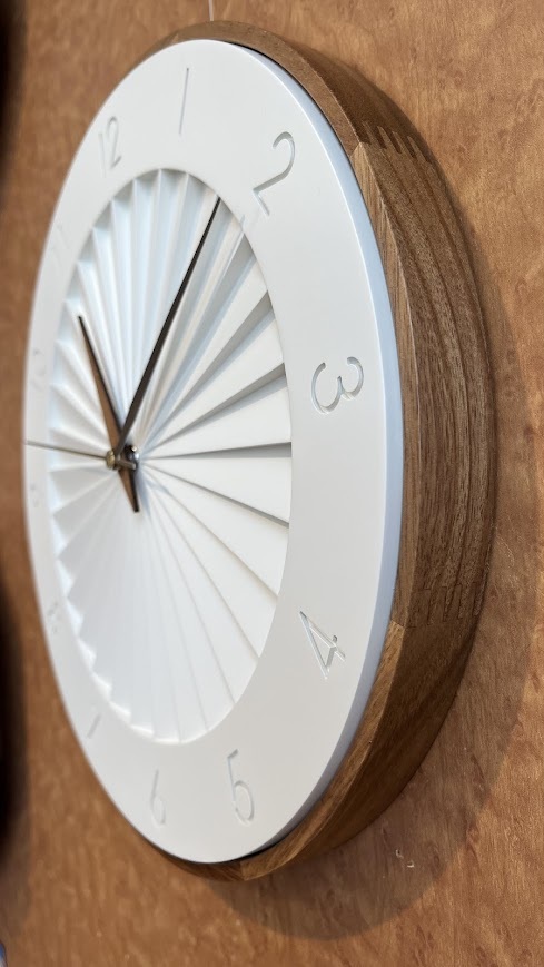 | 放射状に広がる段差が繊細な陰影を作り出す、レリーフのような佇まい。 ライティングで綺麗に演出できます。 このような時計が似合うお部屋をお持ちの方、時計にもこだわってみてください。 分針(長針)、秒針は金属製。 時針(短針)は木製。 サイズ 直径30cm×厚み3cm ※リズム時計工業製スイープムーブメント(コチコチ音しません) ※壁掛け用木ネジ付 ※単3乾電池1本使用(別売) ■生産地:中国 ■素材・成分:ポリレジン 木 ■パッケージ:個別箱 一年間メーカー保証付 新品 どうぞよろしくお願いいたします<(_ _)> |