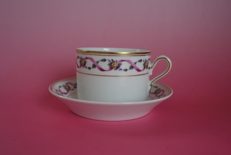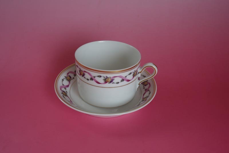 商品説明 | 商品はネオクラシック調のガーランド(勝利の花輪の意味)を花とリボでをイメージした美しいティーカップ&ソーサーです。 |