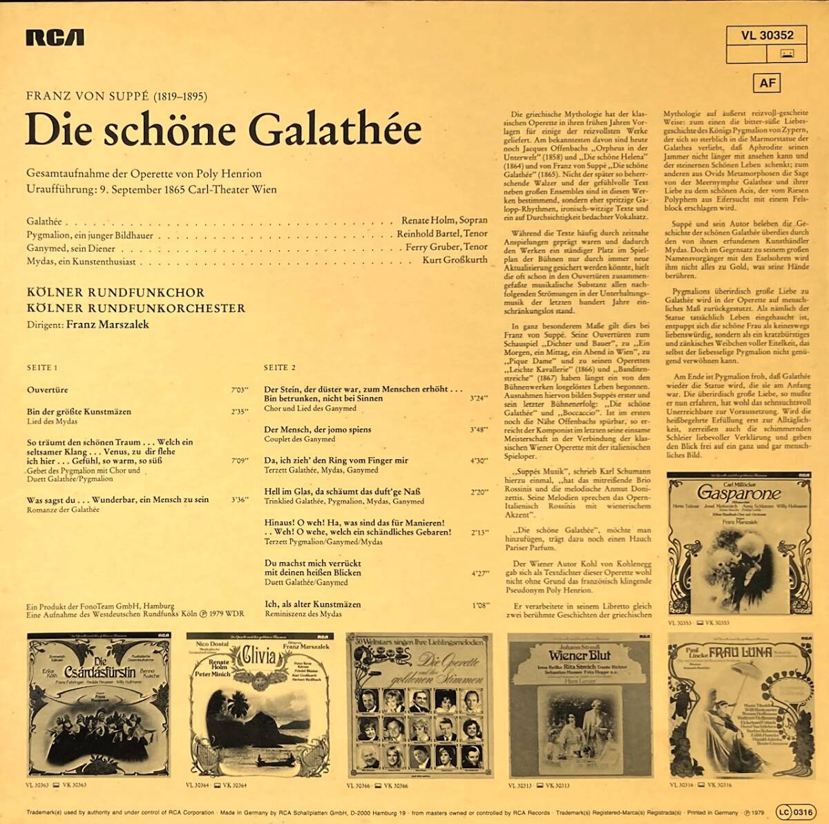 ![]() スッペ/喜歌劇「美しきガラテア」(全曲) レナーテ・ホルム(S)、ラインホルト・バーテル(T)、フェリー・グルーバー(T)、クルト・グロースクルト フランツ・マレチェック指揮 ケルン放送交響楽団 |