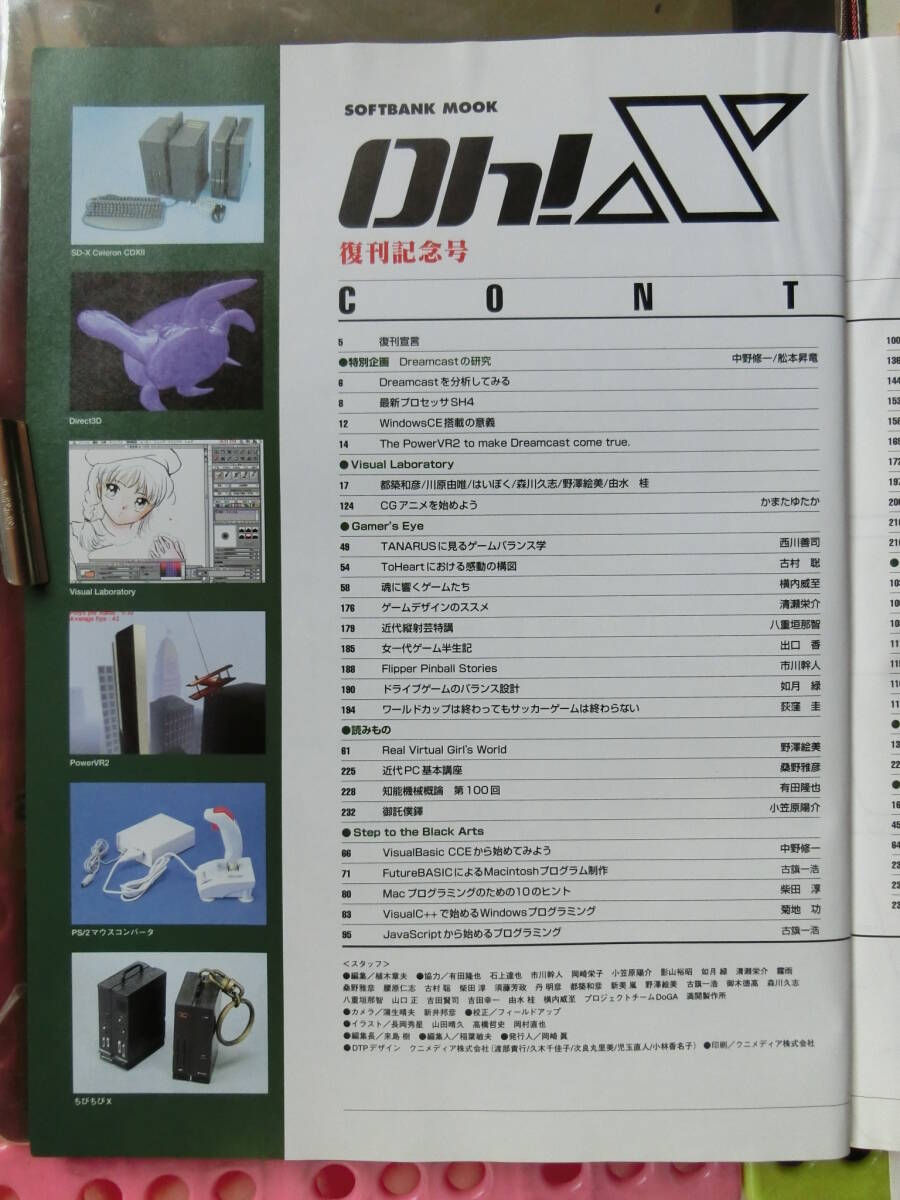 Oh!X 1998復刊記念号 特別付録CD-ROM2枚組,1998_平成10年11月 1日,中野修一,松本昇竜,いかにして満開製作所はCD-ROMを作るようになったか 発売日 1998_平成10年11月 1日 発行 ソフトバンク 大きさ A4 表紙 不屈のパーソナルコンピューティング 復刊記念号 DOS/Vmagazine 特別編集 特別付録 CD-ROM2枚組 アンケートハガキ付 SOFTBANK MOOK Oh!X 復刊記念号 C0NT 5 復刊宣言 ●特別企画 Dreamcastの研究 中野修一/松本昇竜 8 国産プロセッサ SH4(7750) Dreamcastを分析してみる 最新プロセッサ SH4 12 WindowsCE搭載の意義 14 The PowerVR2 to make Dreamcast come true. 16 X68000用フルカラーペイントツール ●Visual Laboratory 17 都築和彦/川原由 / はいぼく/森川久志/野澤絵美/由水桂 124 CGアニメを始めよう かまたゆたか ●Gamer's Eye 48 TANARUS に見るゲームバランス学 西川善司 54 ToHeart における感動の構図 古村聡 58 魂に響くゲームたち 横内威至 176 ゲームデザインのススメ 清瀬栄介 178 近代縦射芸特講 八重垣那智 185 女一代ゲーム半生記 出口 香 188 Flipper Pinball Stories 市川幹人 190 ドライブゲームのバランス設計 如月緑 194 ワールドカップは終わってもサッカーゲームは終わらない 荻窪圭 ●読みもの 61 Real Virtual Girl's World 野澤絵美 225 近代PC基本講座 桑野雅途 228 知能機械 第100回 . 有田隆也 232 御託僕擇 小笠原陽介 ●Step to the Black Arts 68 VisualBasic CCEから始めてみよう 中野修一 71 FutureBASICによるMacintoshプログラム制作 古集一浩 80 Mac プログラミングのための10のヒント 柴田 淳 83 JavaScriptから始めるプログラミング 菊地功 85 Visual C++ で始めるWindows プログラミング 古胡一洛 103 Oh! X68000 その後のX68000 106 いかにして満開製作所はCD-ROMを作るようになったか 108 X680x0用ハードウェアのこれまで、 現況 そして将来 ●連載/その他 16 THE USER'S WORKS 45 CD-ROMの使い方 64 Oh!X LIVE in'98 234 STUDIO X 237 愛読者プレゼント 238 編集室から 古本です。 神経質な方の入札はご遠慮ください。 背表紙の一部(ホッチキス部分)や本の中等をセロテープで補修している本もあります。 経年による劣化(すれ、ヤケ、シミ、折れ、小さい破れ、汚れ等)があります。 落書き、ページ割れ,ページ抜け、見落とし等が、あるかもしれません。 気になる点などあれば、事前に質問して下さい。 この商品の発送後は、クレーム、返品は、お断り致します。