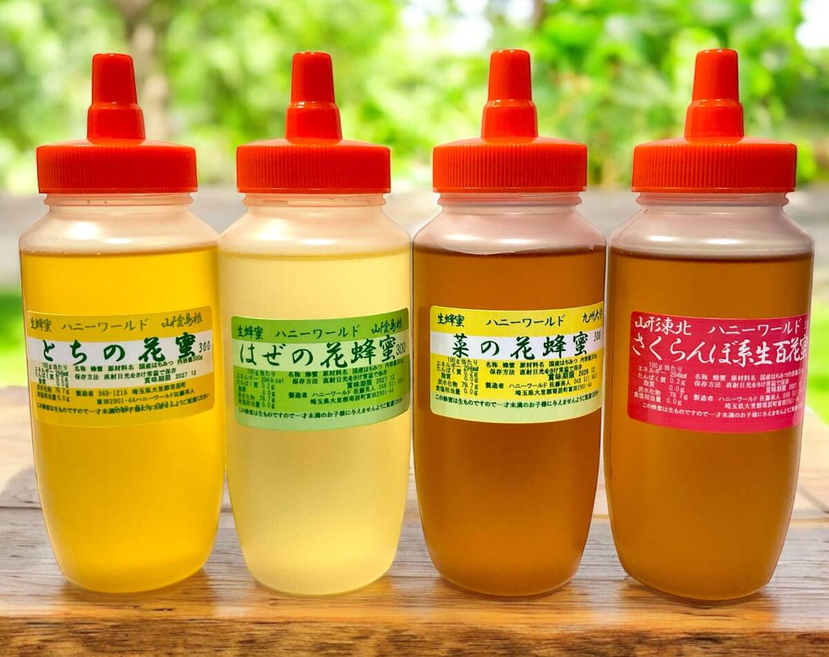 はぜの花蜜、とちの花蜜 さくらんぼ百花 菜の花 特選4本セット生蜂蜜の醍醐味を味わっていただきたいと思います。