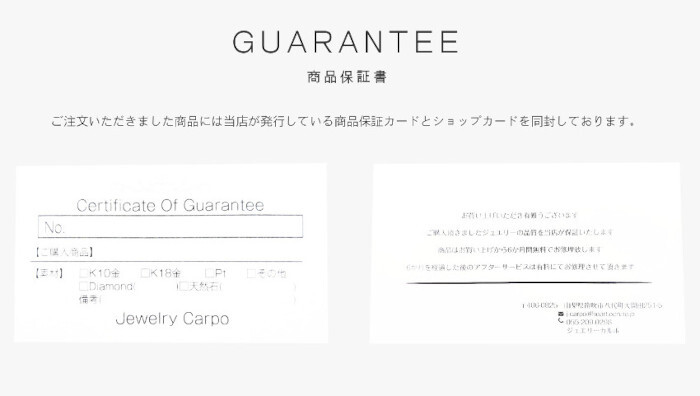 | その他 | 自分用 普段使い はもちろん 誕生日 母の日 クリスマス 記念日 等 贈り物 にも最適です。 ■生産国:made in Yamanashi,Japan ■当店の発行する品質保証書付 ■お買い上げ後6か月の無料お修理付帯 ■全国送料無料 ■ECO包装(ポーチ付き) ■有料ギフトラッピング承ります。(BOXリボン:400円/BOXリボン+手提げBAG:600円) ※なるべく実物の色あいに近づけるように心がけて撮影していますが、モニター環境によって素材感や色合いが若干異なる場合がございますのでご了承ください。 ※ジュエリーはとてもデリケートです。入浴やスポーツ、家事をするときはお外し頂く事をお勧めいたします。 また、汗や温泉、化粧品やフレグランスなどは変色や劣化の原因となりますので取り扱いにはご注意ください。 |