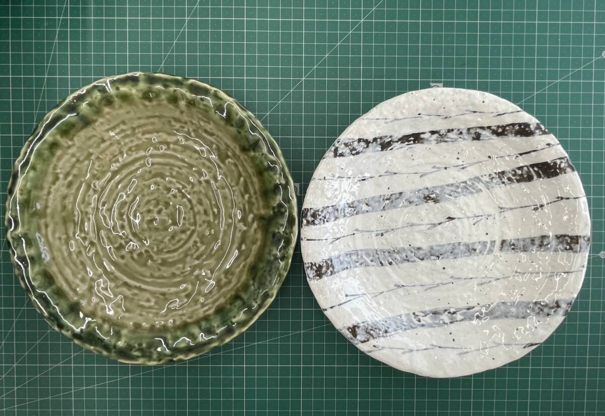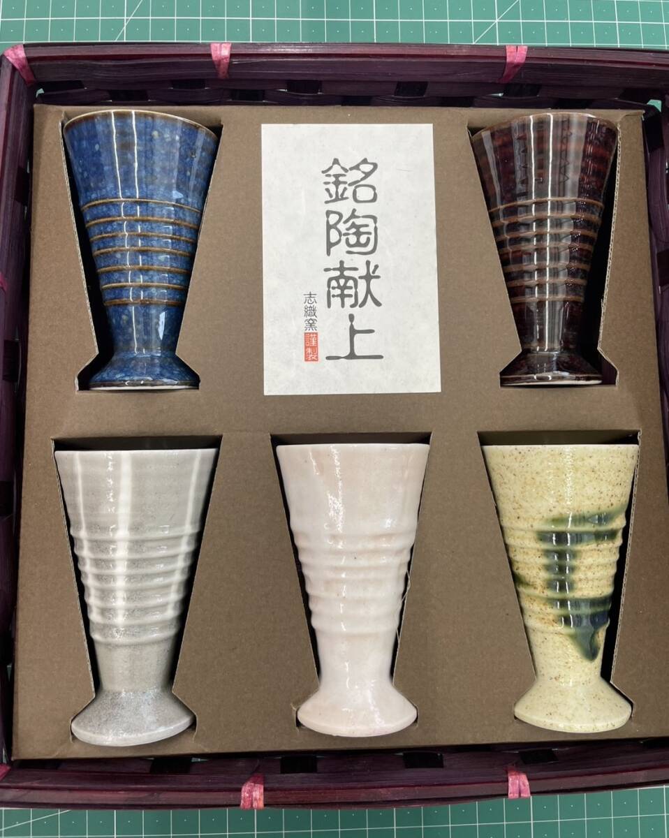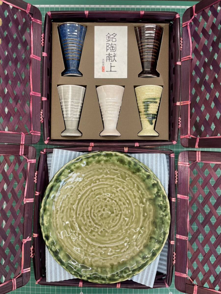 | #2827E 銘陶献上 志織窯 フリーカップ 5客 陶器皿 2枚セット 未使用 | ||