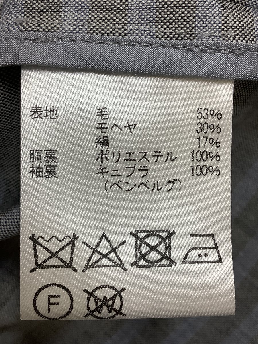 | 管理番号:10^138006 アクアスキュータム (Aquascutum) グレーと薄ブルーボーダー スーツ 表示サイズ:なし 実寸(参考)