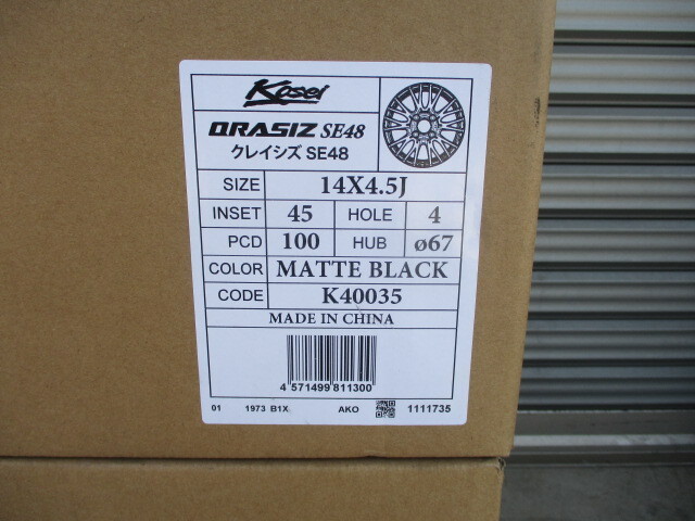 商品詳細 【ホイールサイズ】 F:R 14×4.5J オフセット+45 PCD:100-4H ・新品未使用品です。 ・カラーは、マットブラックです。 ・新品未使用品ですが、多少の小傷や汚れ等はご了承下さい。 ●ホイールの状態は画像を参考にして下さい。 ※マッチング等はご落札前に必ずネットやお店等でお調べ下さい※ (題名に記載がある車両でもマッチング等は必ずお調べ下さい) | |||