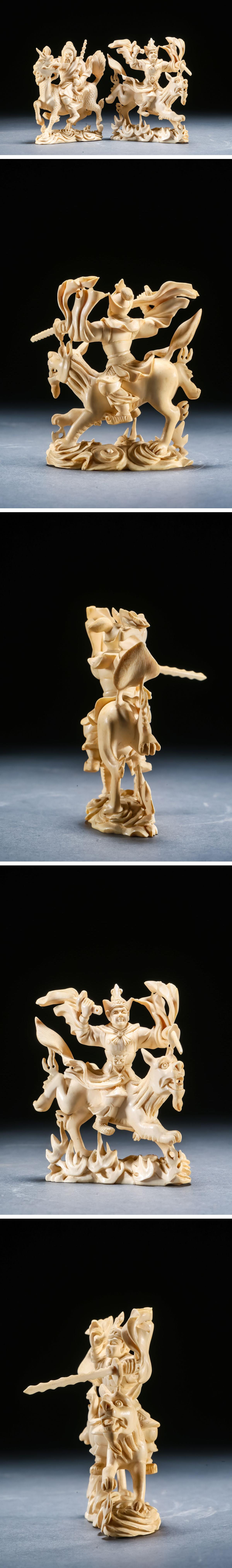 【雲錦】某有名オークション買入 時代物 特殊白材 武将造像二点 骨董品 古美術Z-56