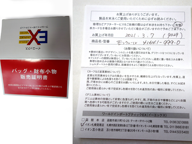 | 付属品 | 商品情報タグ類 財布小物販売証明書 モンクレール三角タグ(フロント開閉部のファスナーについており外しておりません) 替えボタン類