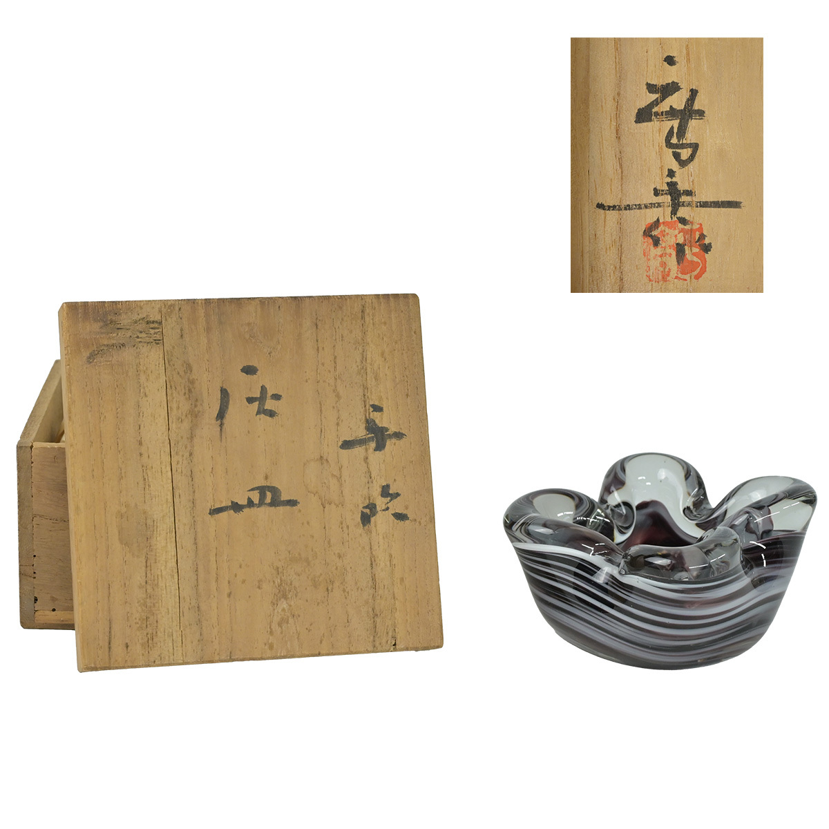 大正10年4月28日生まれ。岩田藤七にまなび,昭和24年独立。色ガラスに金ぱくを混ぜた飾筥(かざりばこ)で独自のガラス工芸分野を確立。50年のデンマークでの「全世界からのガラス展」をはじめ,国内外で活躍した。平成元年飾筥「春に舞う」で芸術院恩賜賞。芸術院会員。9年文化功労者。14年文化勲章。平成16年9月18日死去。83歳。東京出身。東京美術学校(現東京芸大)卒。 ご覧いただきありがとうございます。ガラス工芸品のコレクションを同時に出品中です。 併せてご検討ください。よろしくお願いいたします。 寸法 全長 約 8×9×6cm スレ傷、使用感があります。 裏側にかけ傷があります。 その他、詳しくは画像にてご確認ください。 | ||