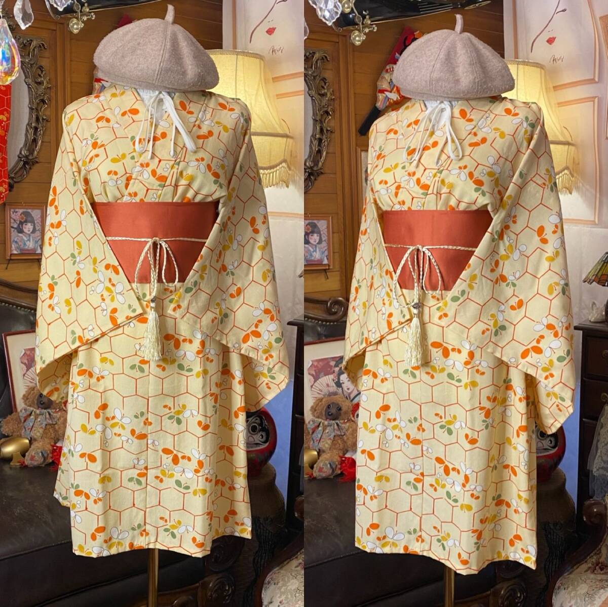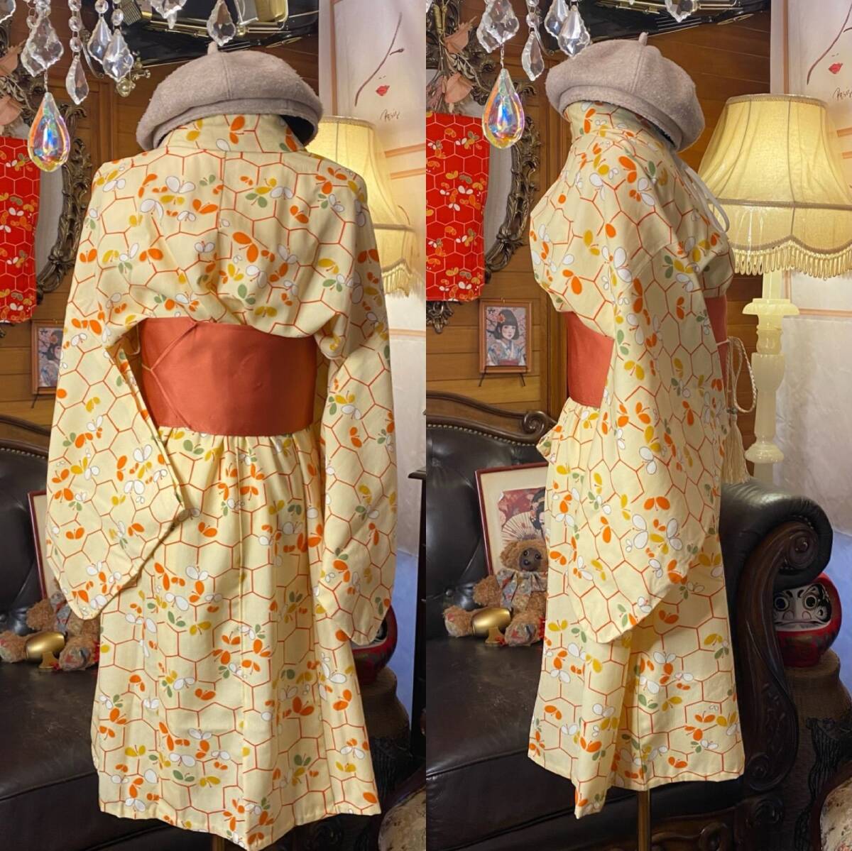 【 着物 リメイク ミニミディ ワンピース アンサンブル 帯サッシュベルト付き 和洋折衷 ハンドメイド レトロ 古着 朱赤×クリームの蝶と亀甲 aKW-88】| 出价者 | 信用 | 价格 | 时间 |