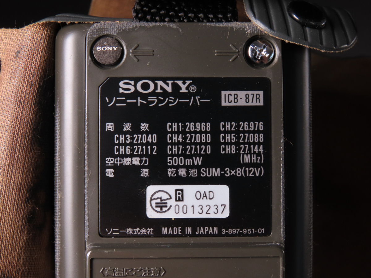 【ONE'S】当時物 SONY ソニー ICB-87R ROGER トランシーバー 500mW 8ch CB無線機 市民ラジオ ① | |||