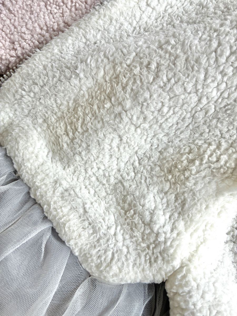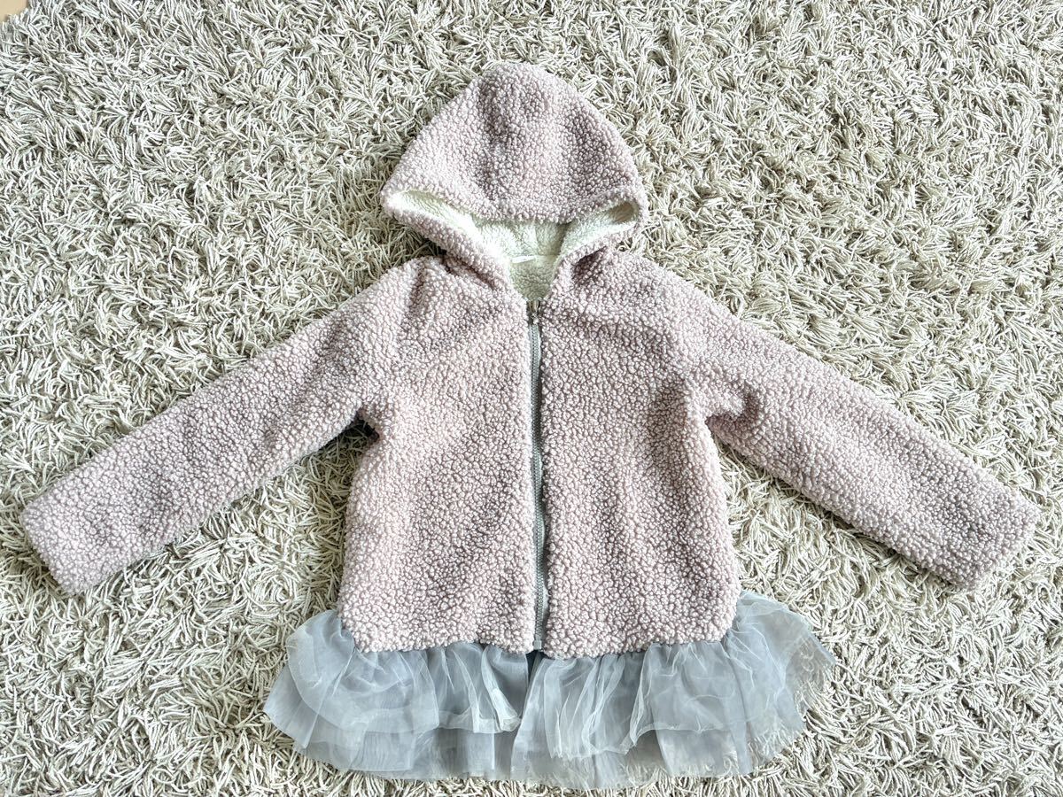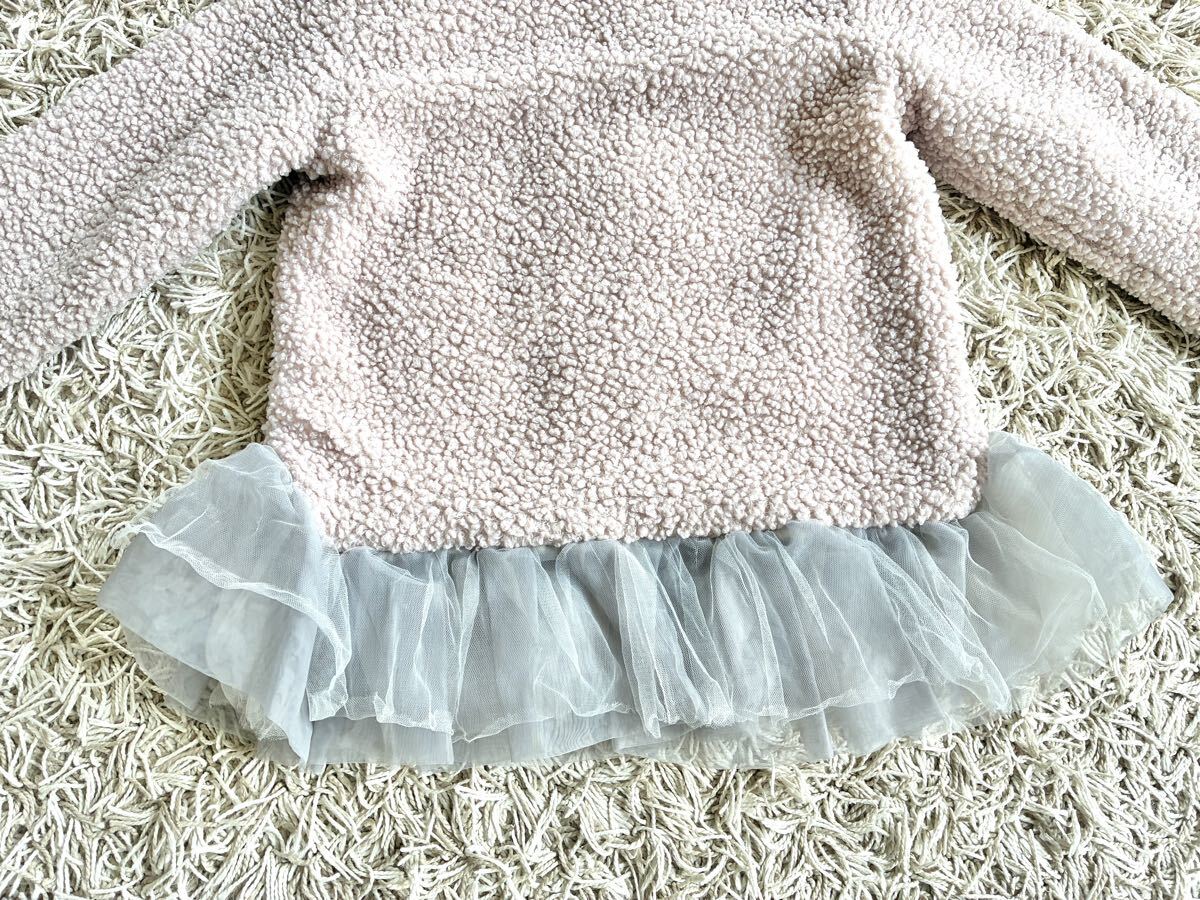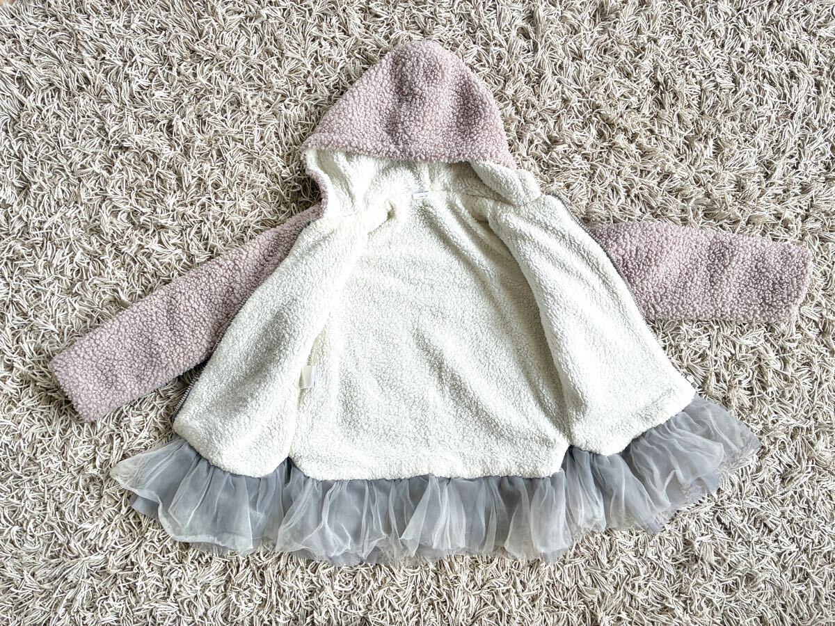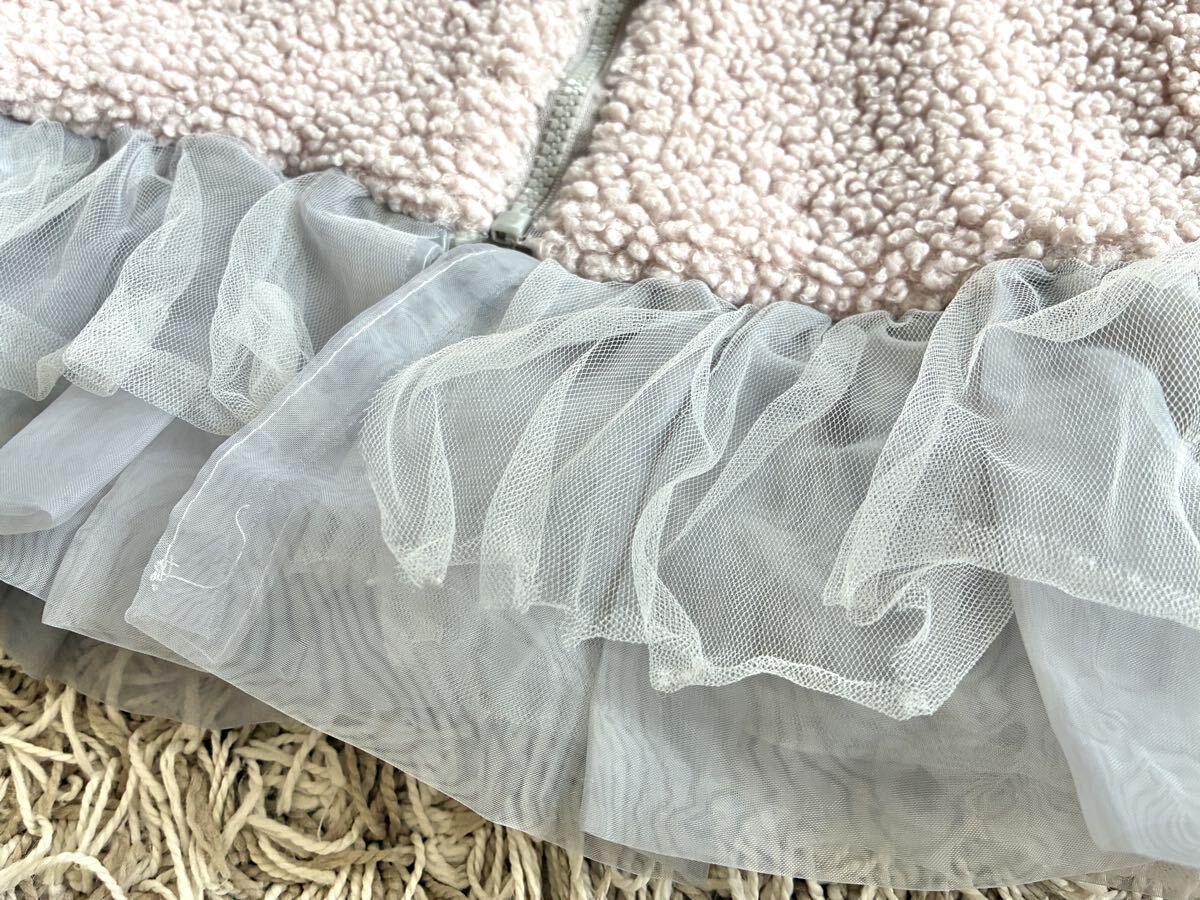 enchante petitのモコモコのボアとチュールが女の子らしいバレリーナのようなシルエットのジップアップパーカーです!