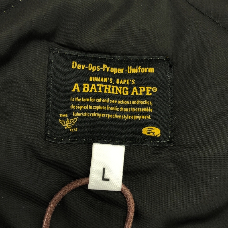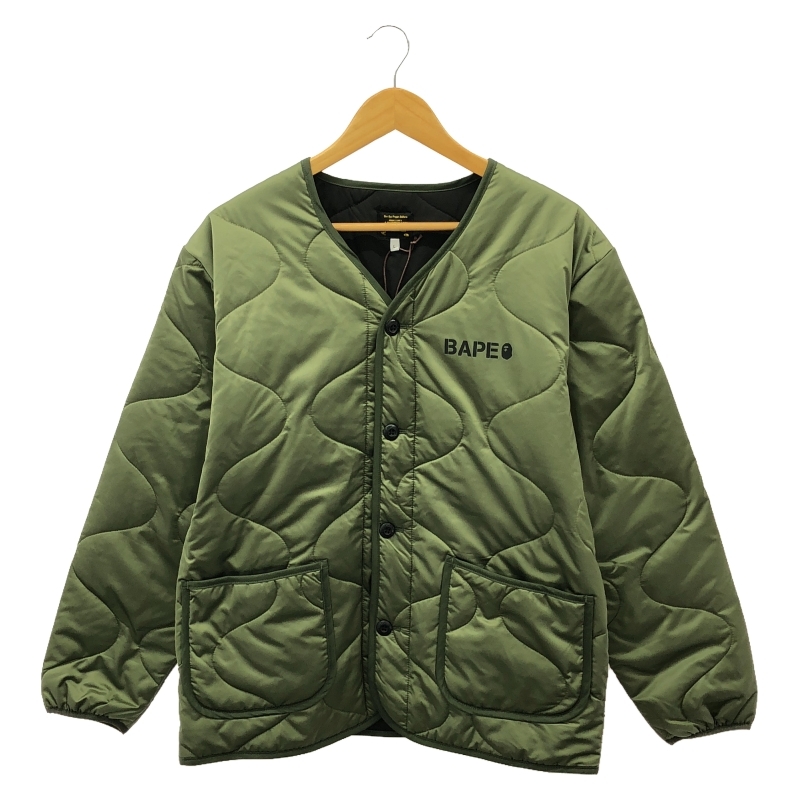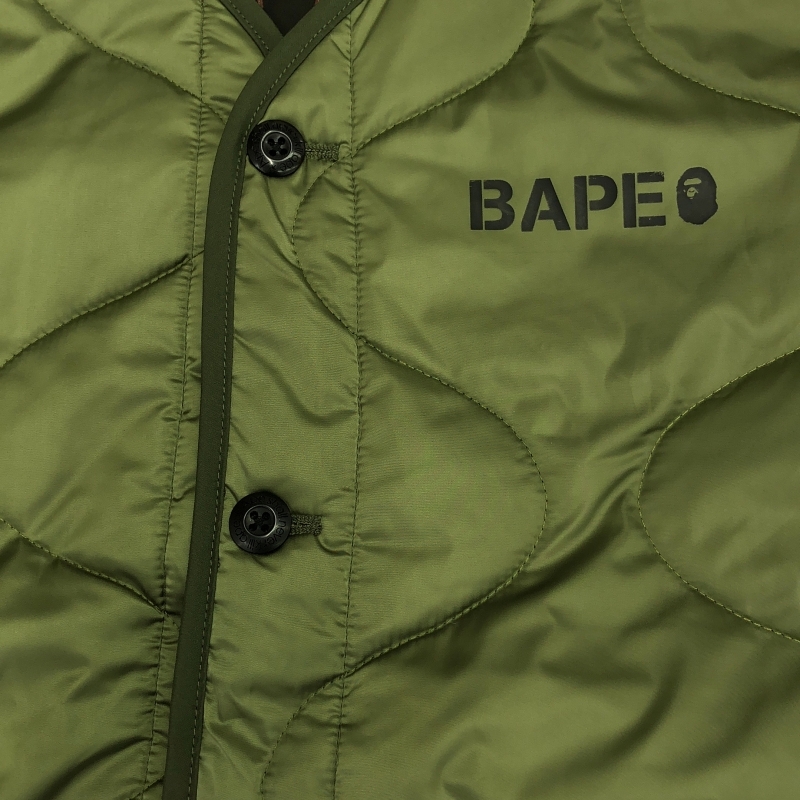 | 209999090540)A BATHING APE キルティングジャケット サイズL カーキ OZXACM0108210 エイプ |