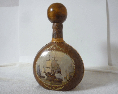 | 希少 洋酒 革ボトル レザー 本革 帆船 アンティーク ヴィンテージ | ||