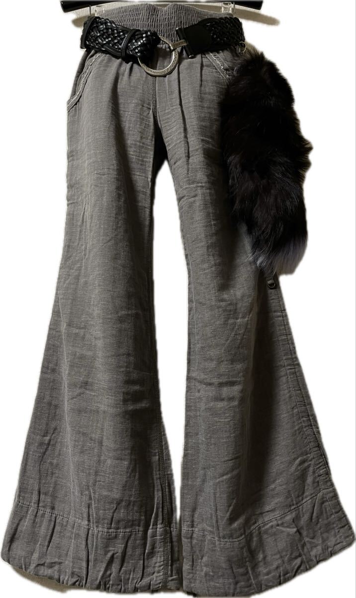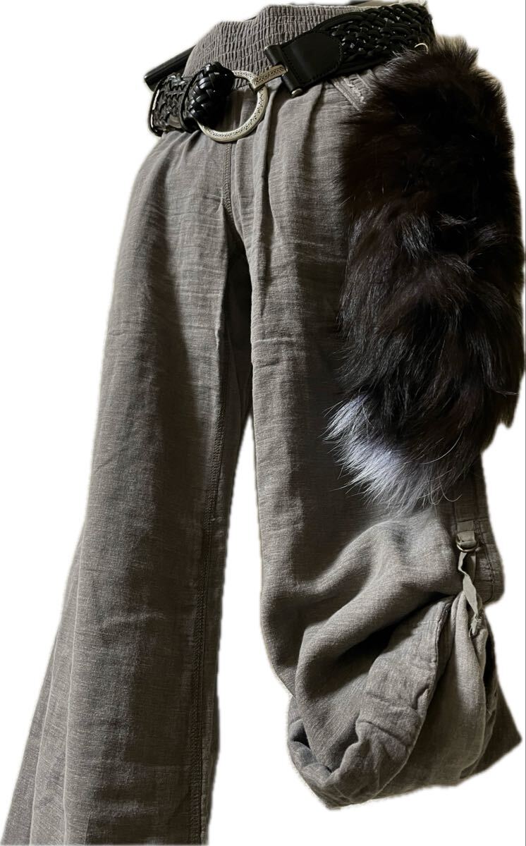 goa g.o.a vintage military fox fur belt gimmick Parachute Cargo flare Pants