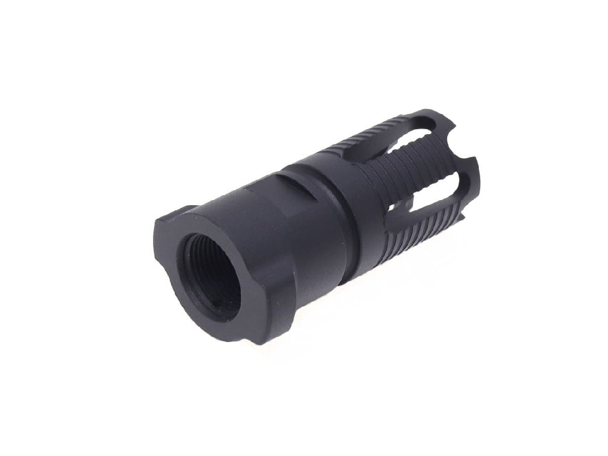 商品説明 ITEM INFO Gemtech社のG5アサルトフラッシュハイダーを再現 マッドブル製の14mm逆ネジアウターバレル対応フラッシュハイダーです。 本体は軽量なアルミ製でその精巧な削り出しはさすがマッドブル。ネジ山もしっかり作られており、ガタつくこともありません。根本には固定するためのイモネジもついています。 同メーカーのGEMTECH G5 サイレンサーをワンタッチで取付可能です。 商品基本情報・スペック ITEM SPEC ●商品名 : MADBULL GEMTECH/G5 フラッシュハイダー BK CCW ●商品番号 : MAD-GM-006 ●ブランド : MADBULL ●対応 : 14mm逆ネジアウターバレル ●素材 : アルミ ●重量 : 約25g ●メーカー品番 : G01-005CCW 注意事項 ITEM NOTE ∇商品固有の注意事項 ※マッドブル製以外のG5サイレンサーへの適合は確認しておりません。 ※生産ロットによってパッケージは変更される場合がございます。 ※配送事故・誤送以外の初期不良はメーカーアフターサービスにご連絡ください。 ※予告なく製品の仕様、価格が変更される場合がございます。それに伴う返品・交換はお断りさせていただきます。 ∇ご購入時の留意事項 ※商品はすべて点検してからのお届けになります。商品によってはパッケージの開封等を行う場合もございますことをご了承ください。 ※商品には万全を記しておりますが、万一不備な点がございましたら、お手数ですがお問い合わせフォームにてご連絡頂ますようお願い致します。 ※商品が適合外であった場合、またはお客様都合による交換・返品・返金は出来ません。よくお確かめの上、ご購入下さい。 ※モニター環境により、実際の商品の色と若干異なる場合がございますのでご了承下さい。 ※他サイトでも同時販売の為売り切れの際はご了承下さい。 ※売り切れの際は早急にご連絡させて頂きます。(当社休業日を除く) 関連商品 RELATED ITEM |