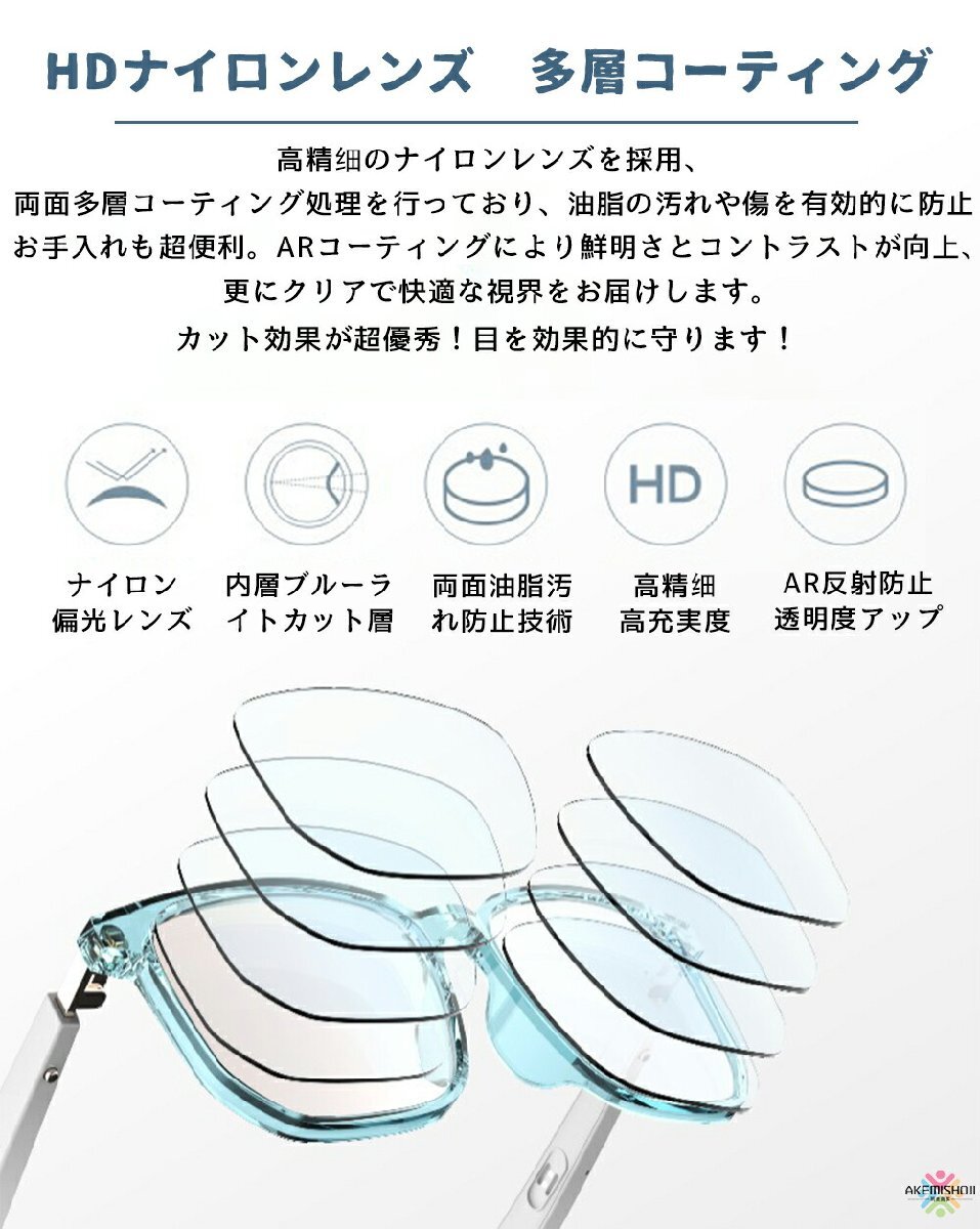 製品機能: Bluetooth音楽再生/音声通話/ブルーライトカット/UVABカット/UV400