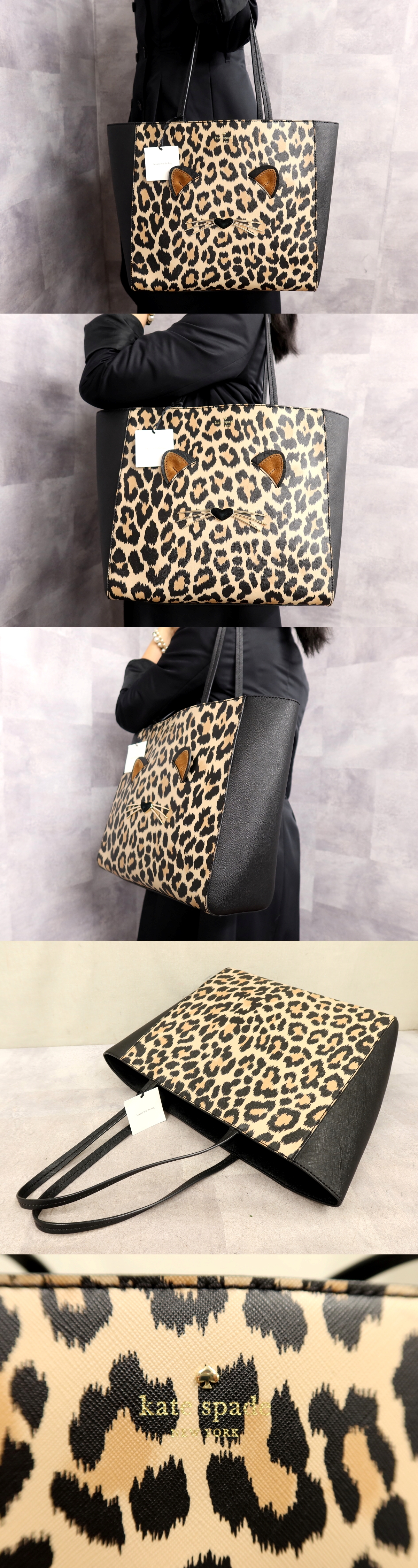 ●超美品●kate spade ケイトスペード●Run Wild Hallie Leopard Hallie●サフィアーノ レザー●トート バッグ●黒 ベージュ●A4●Js62113 [浏览原始页面]