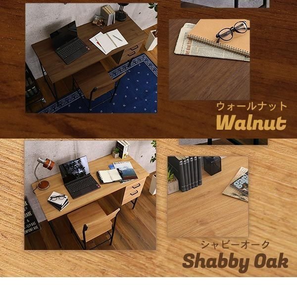 | ヴィンテージ風の引き出し付きデスク&チェアセット! 綺麗な木目の天板に、ブラックスチールも用いてスマートな印象を引き立てます。 ちょっとした小物を収納できる引き出しがついていて、天板はいつでも広々ご使用頂けます。 チェアは使いやすくシンプルなデザインを採用しています。 |