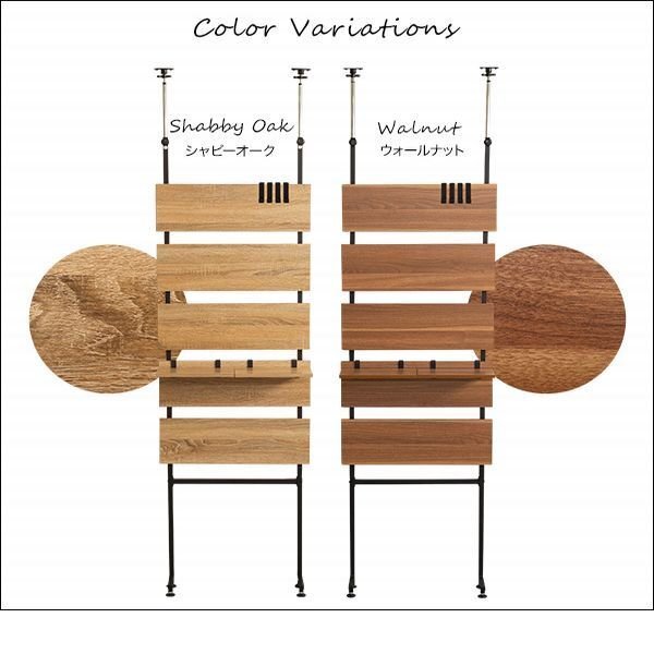 | 【ポイント】 木目の棚板とブラックスチールが美しいヴィンテージテイストのラダーラックです。 お部屋の目隠しや付属の棚を使い小物を置いたりと様々な使用用途で便利です。 つっぱり式なので、地震などの揺れの際に倒れにくい安心設計。 壁に穴を開けることがないので賃貸でも安心です。 |