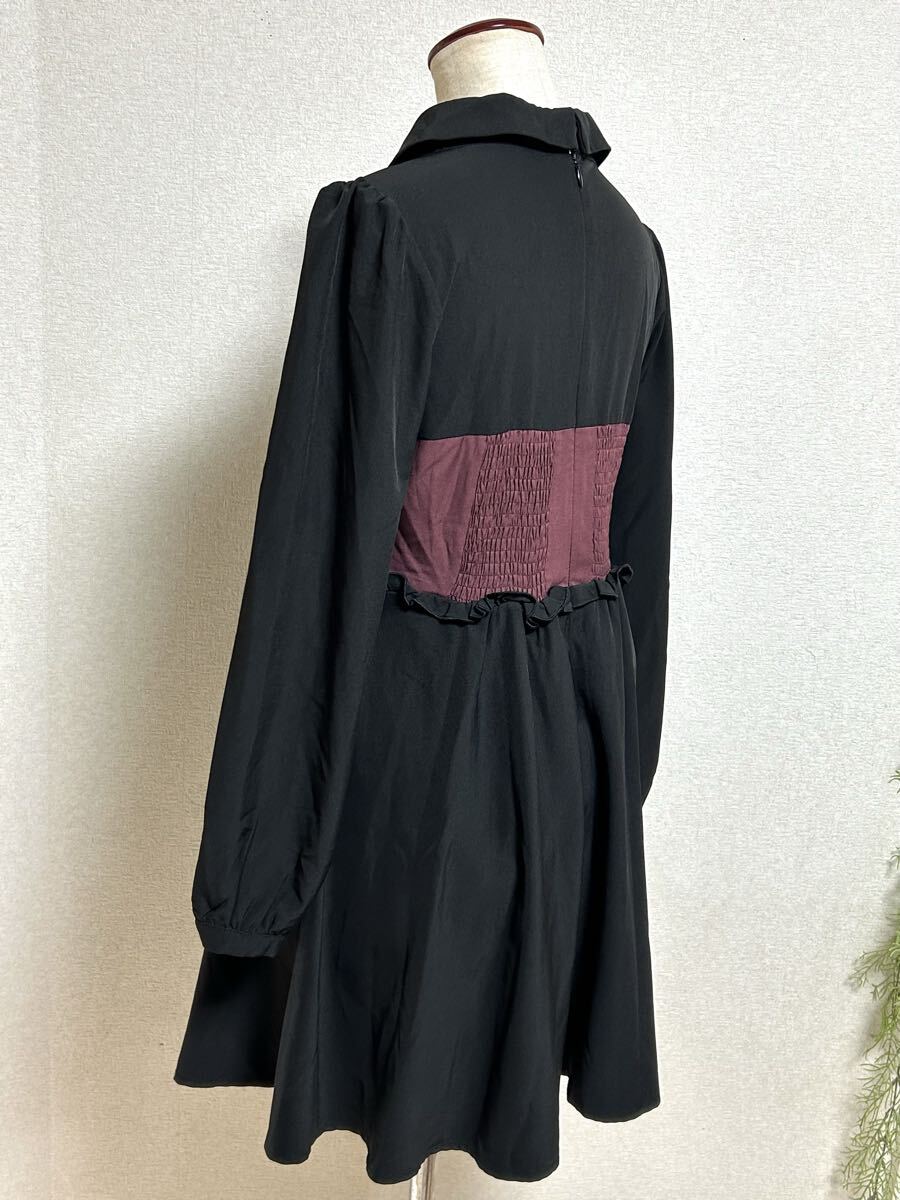 【 ROJITA★ロジータ】ワンピース・ストレッチ入り・ブラック/ボルドー・Fサイズ