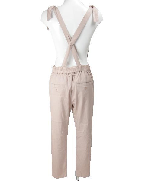| コメント | 落ち着いたスモーキーピンクカラーのサスペンダーパンツです。 テーパードデザインでサスペンダーにはリボンがあり、 結ぶとキュートになりますよ。 サスペンダーは取り外し可能です。4cmの長さ調節ができます。 |