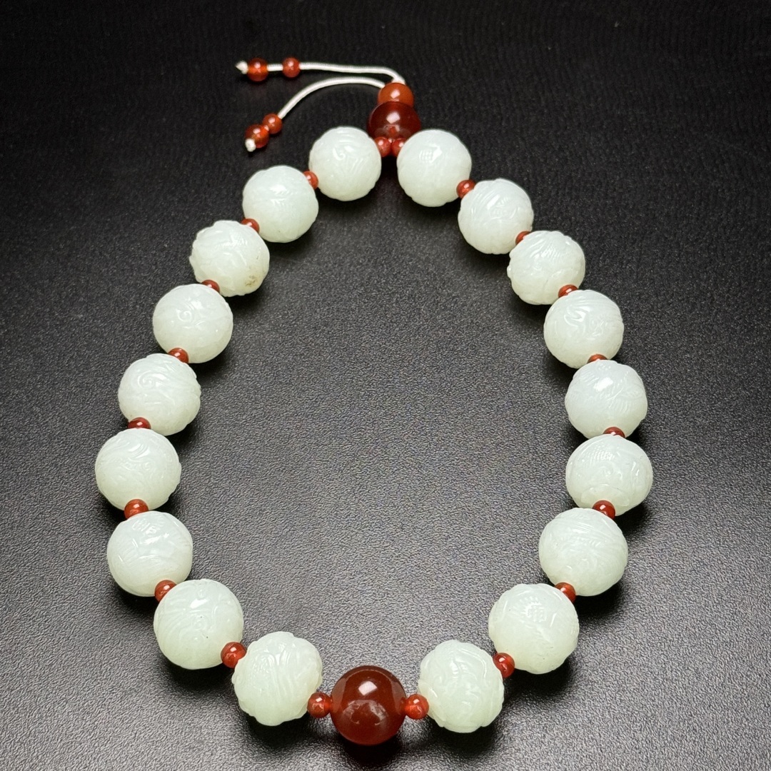 ◆御泓軒◆『清朝時代 和田玉 白玉彫 龍紋手持』極細工・古賞物・中国古玩・中国古美術