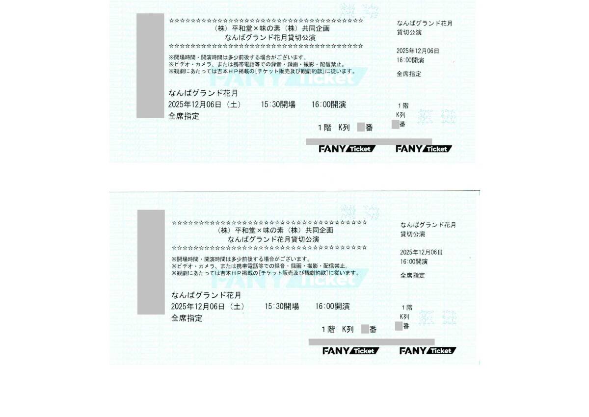 12月6日(土曜)なんばグランド花月 貸切公演チケット 2枚セット| 出价者 | 信用 | 价格 | 时间 |
