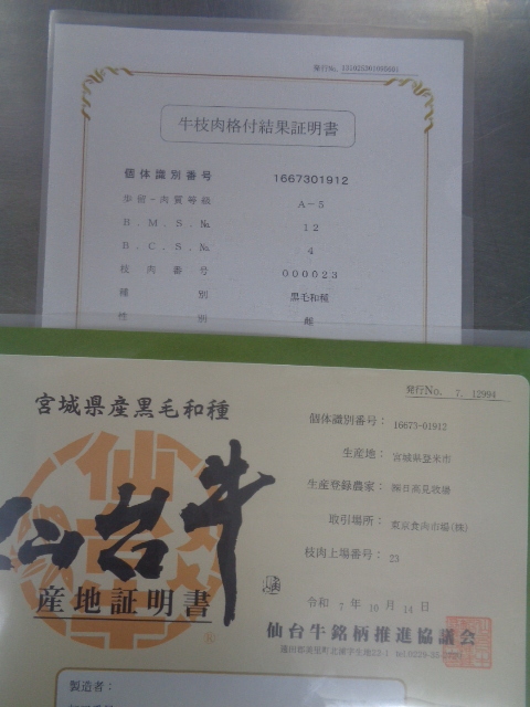| 仙台牛A5牝 超特すね肉(肩すね) 3,57kg | ||