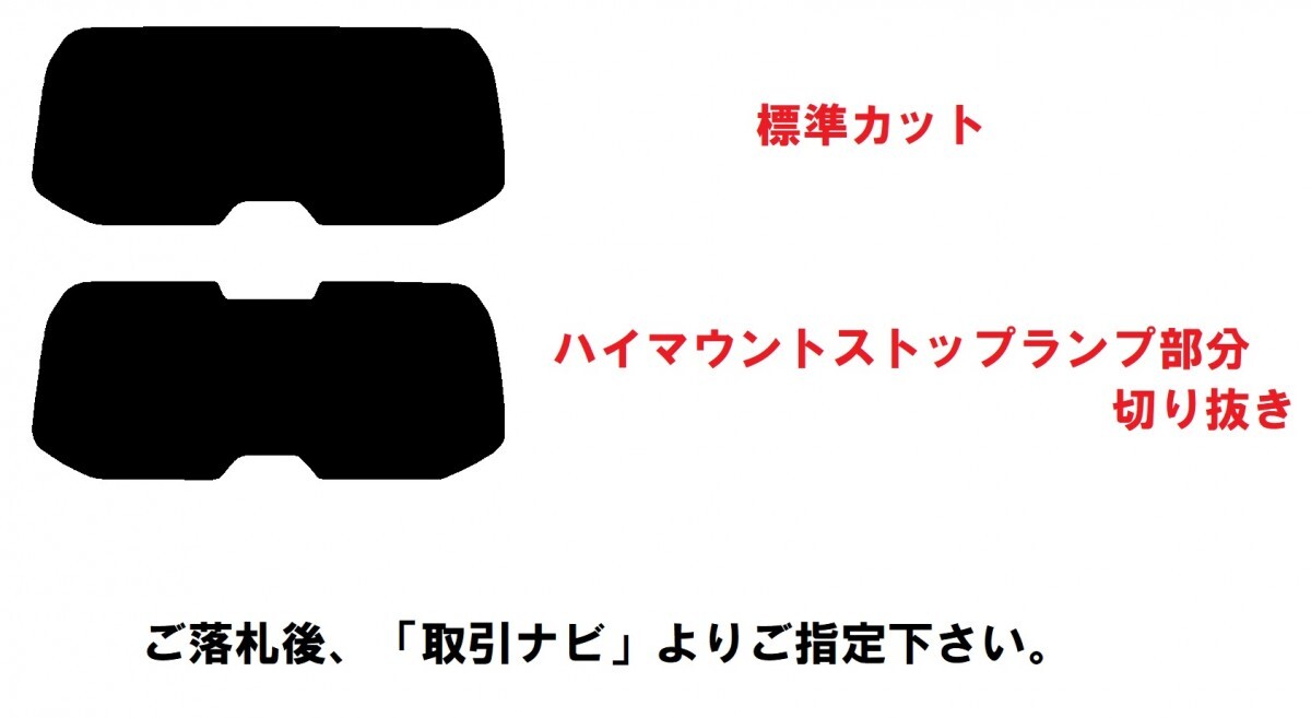 ご落札後、取引ナビよりご希望のフィルム・ハイマウントストップランプ部分の切り抜き 有り・無し 等をお聞きさせて頂きます。 | ||