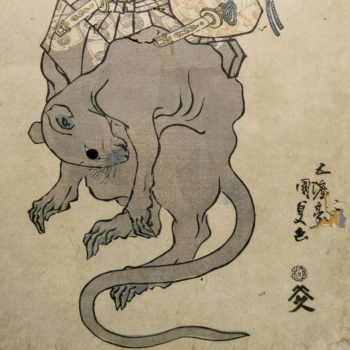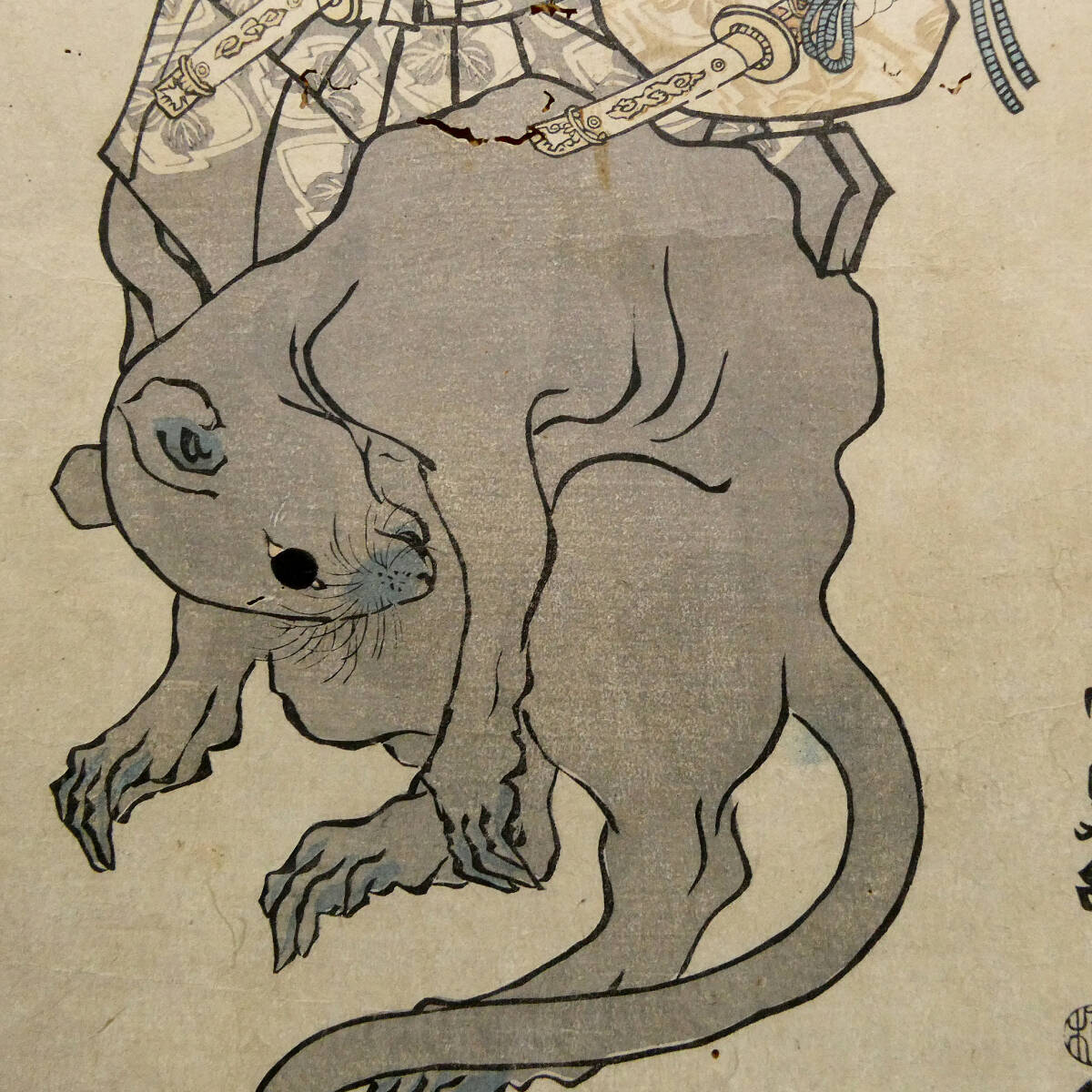 ■ 五渡亭(歌川)国貞 妖怪画 「仁木弾正 尾上菊五郎」 江戸時代 木版浮世絵 妖術使い 『伽羅先代萩』 ■