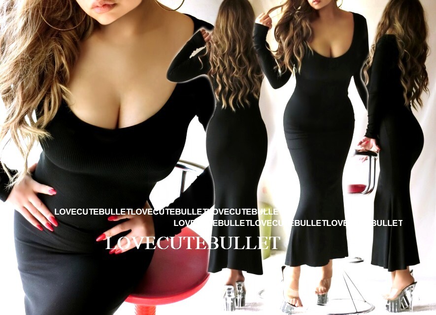 | 深美胸カット極美ラインsexyフィットピタ尻美タイト マーメイドマキシ丈ワンピ(黒) | |||||||||||