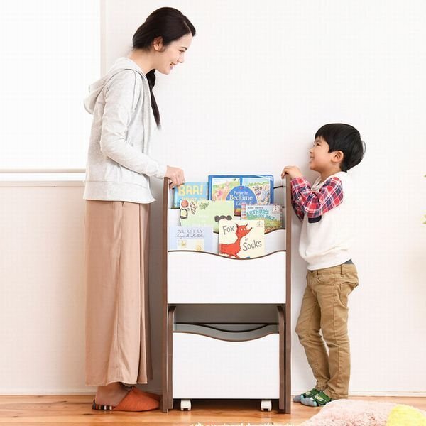 弾力性、衝撃吸収に優れたEVA樹脂をすべてのフチに採用。 さらに角を丸くして金具の使用を極力減らした、小さなお子様も安全にご使用いただけるシリーズです。 表紙が見えるので、探している絵本も簡単に探せます。 キャスター付きのおもちゃBOXは、お気に入りのおもちゃを入れてもお子様の力で簡単に移動可能。 |